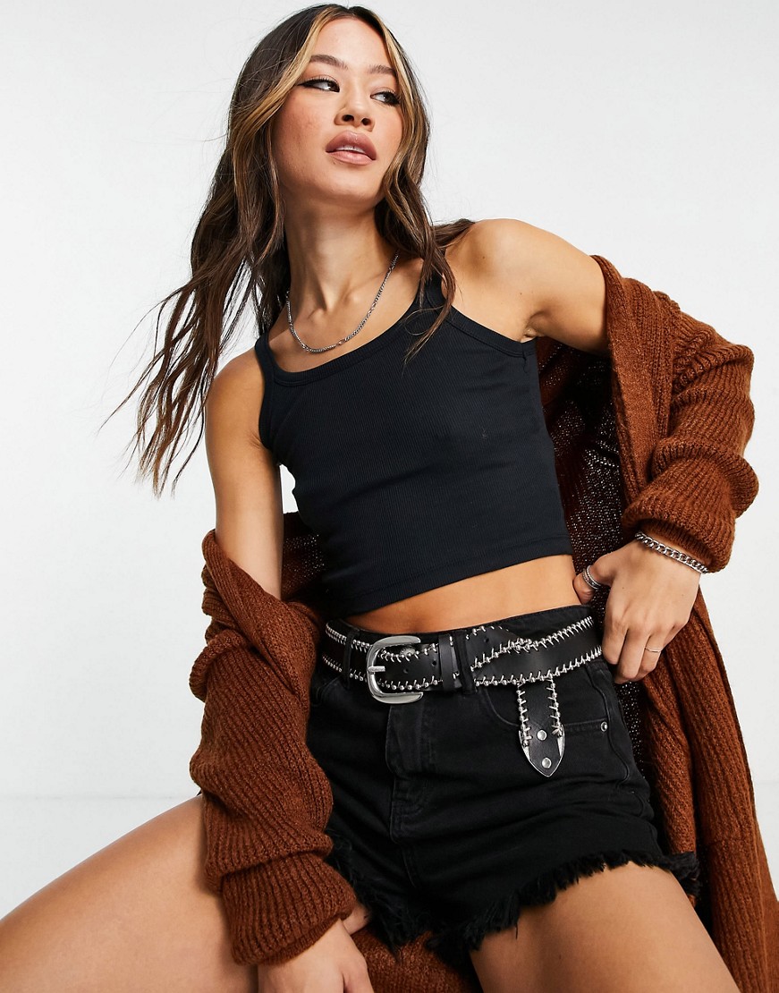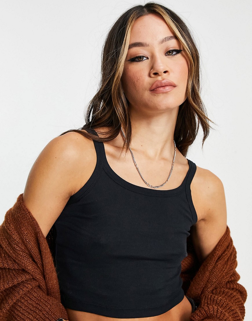 Topshop czarny krótki prążkowany top damski 38