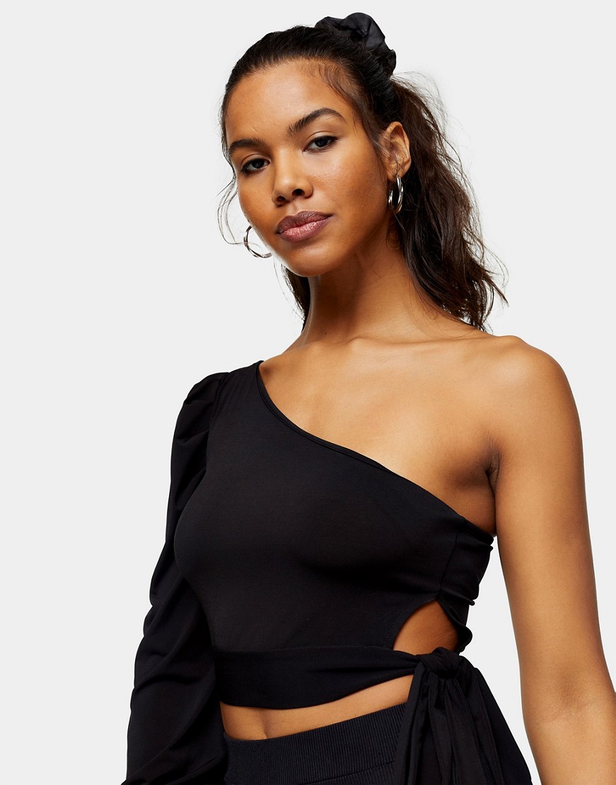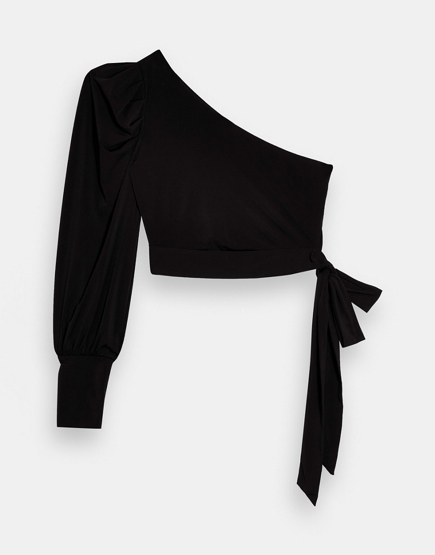 Topshop czarny krótki top na jedno ramię wiązany z przodu 36