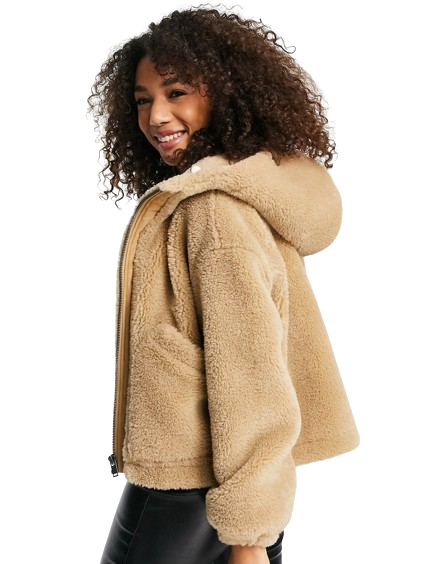Topshop jasnobrązowa kurtka z kapturem ze sztucznego kożuszka 38