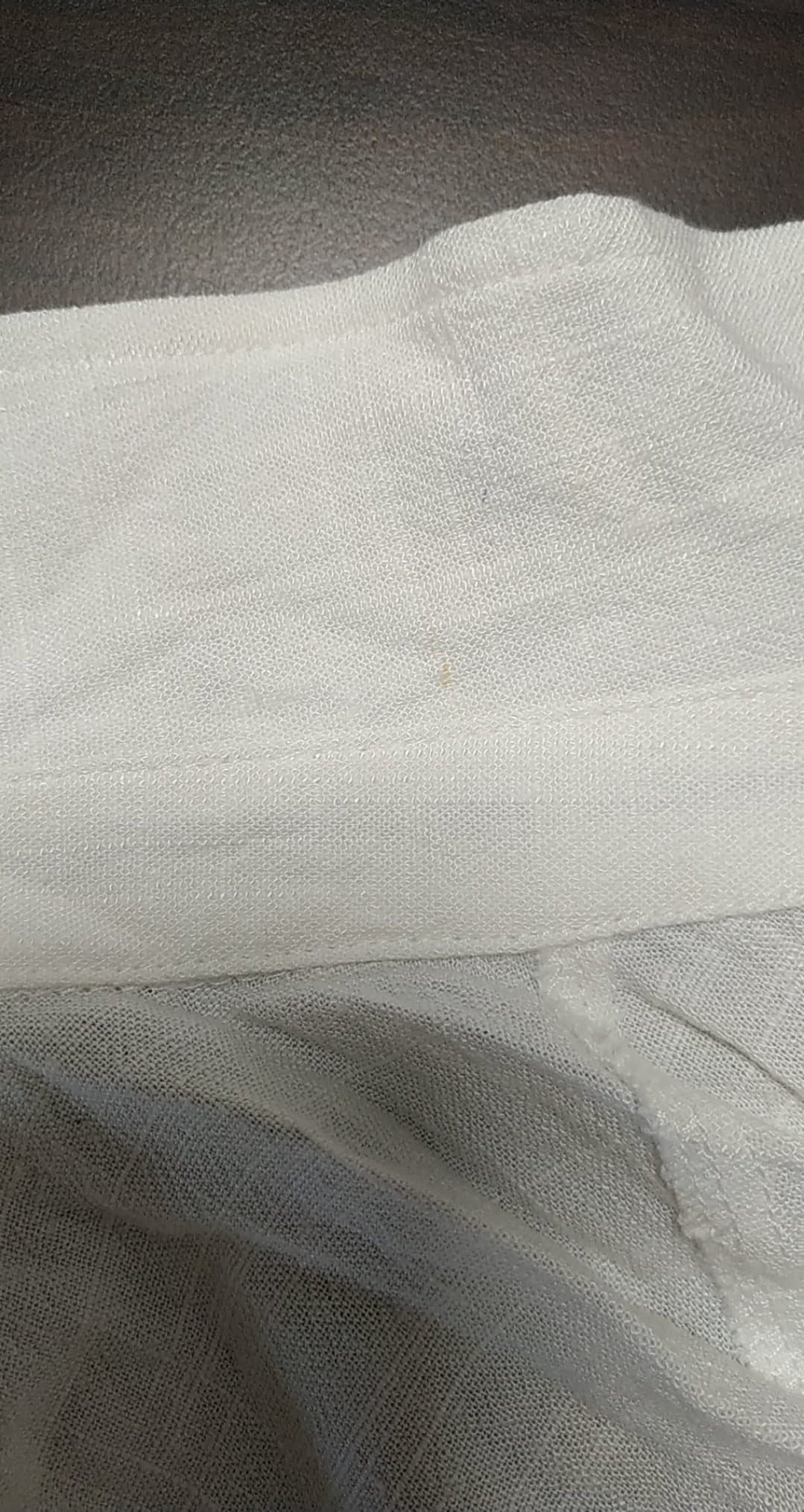 - defekt wciągnięte kolorowe nitki na kołnierzyku