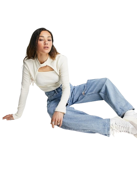 Topshop kremowy kardigan z wycięciem i topem 38