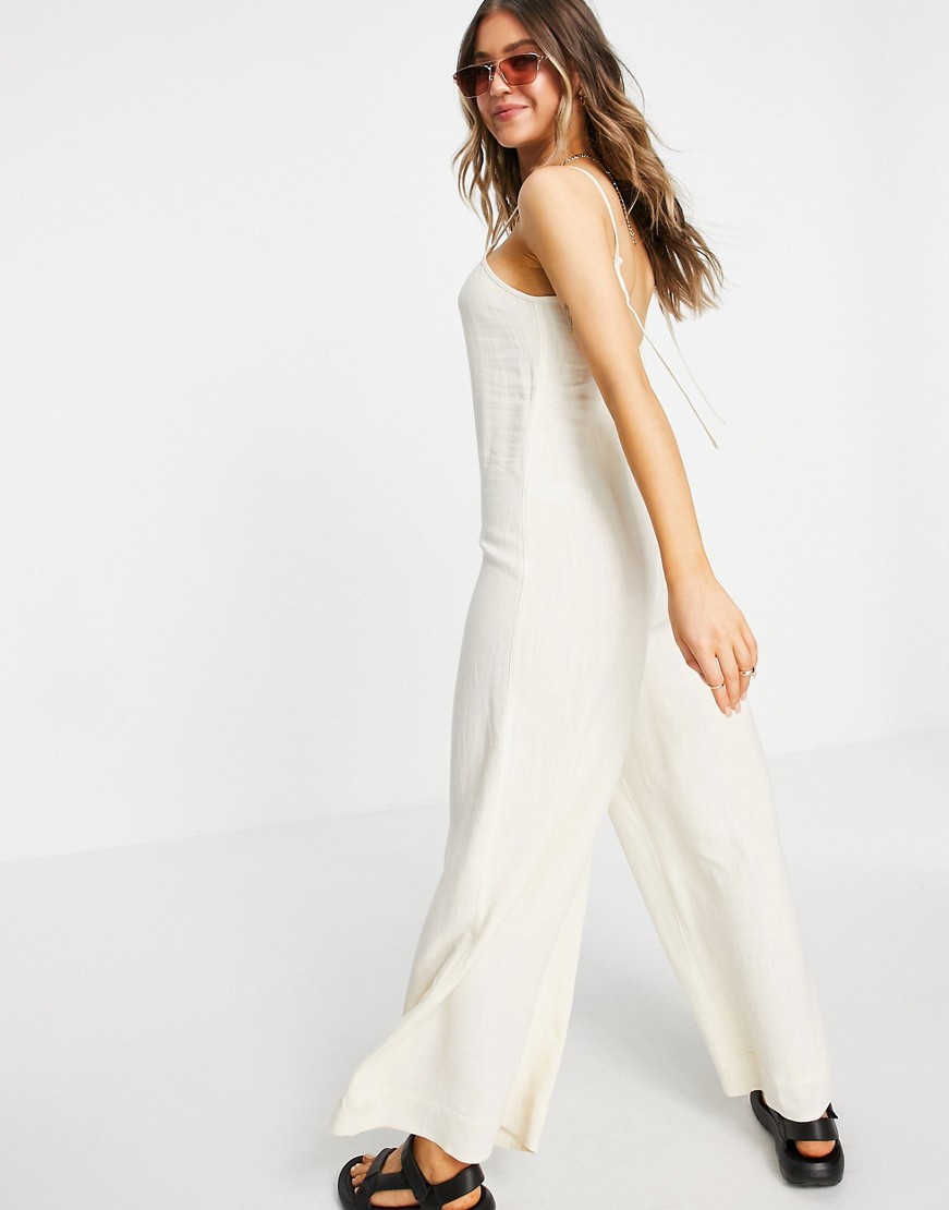 Topshop lekki kombinezon na ramiączkach kremowy 38