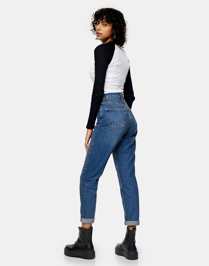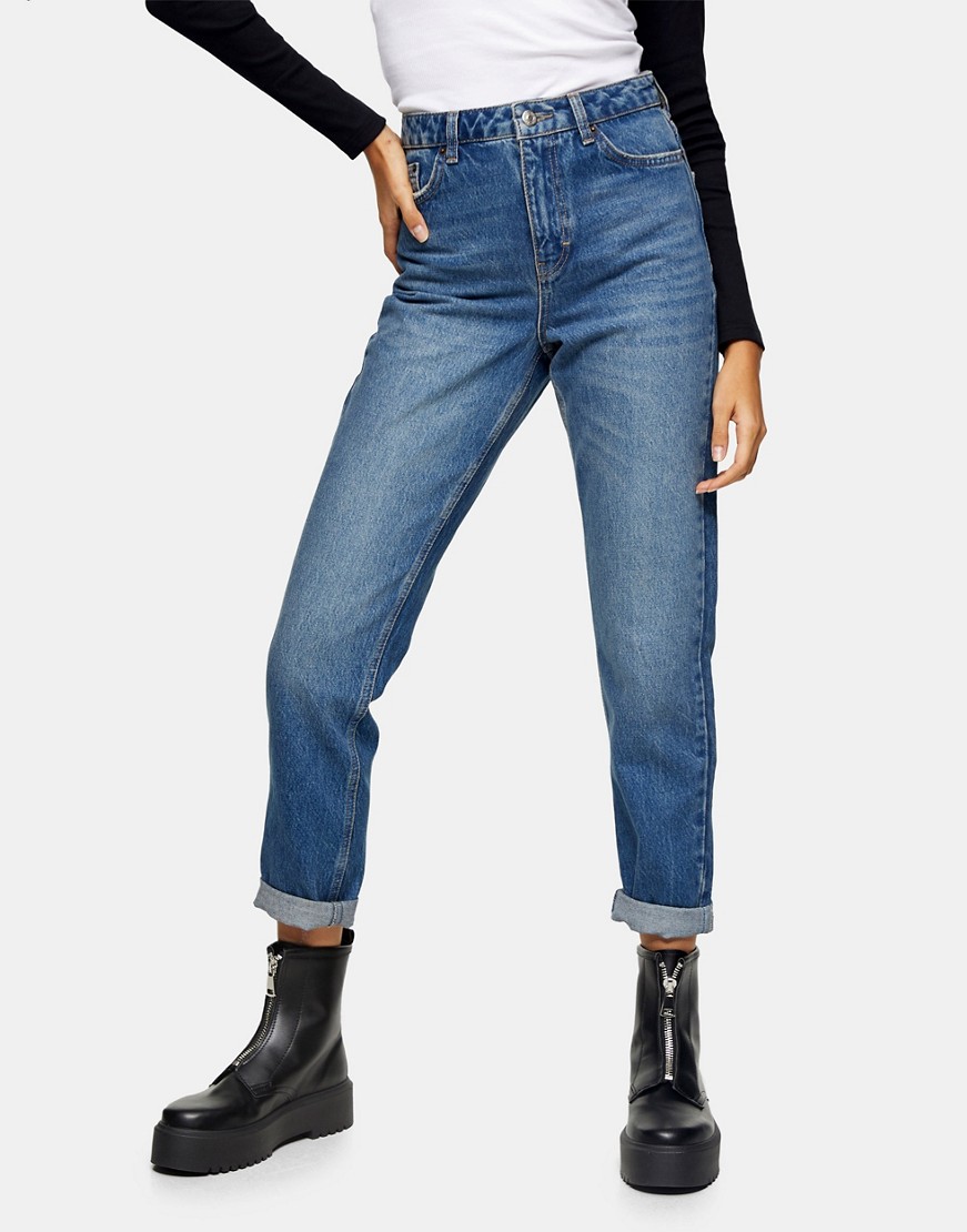 Topshop niebieskie jeansy mom fit do kostki W28 L30