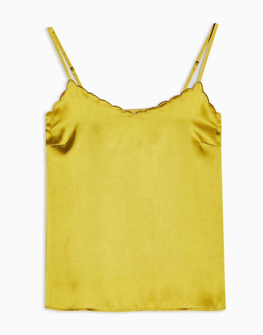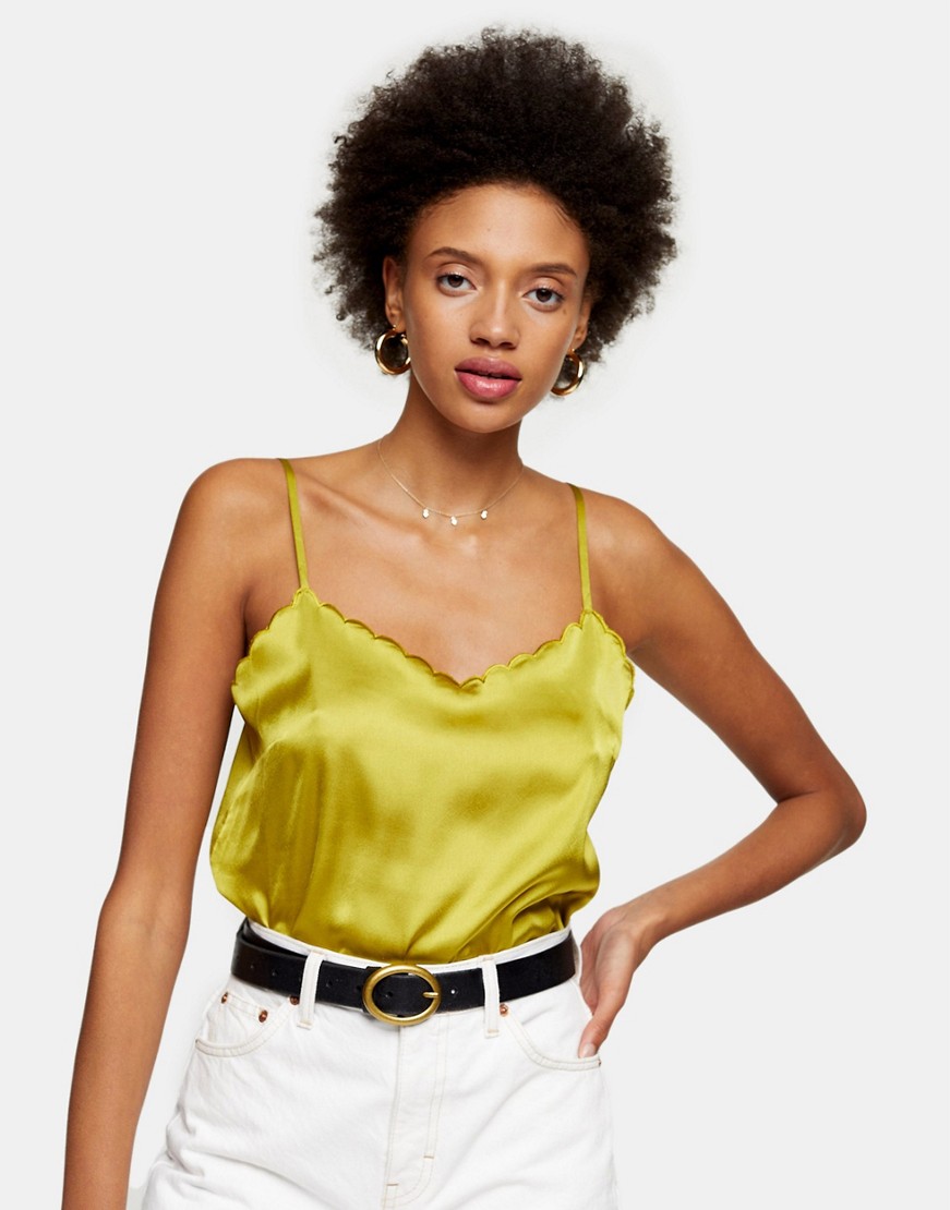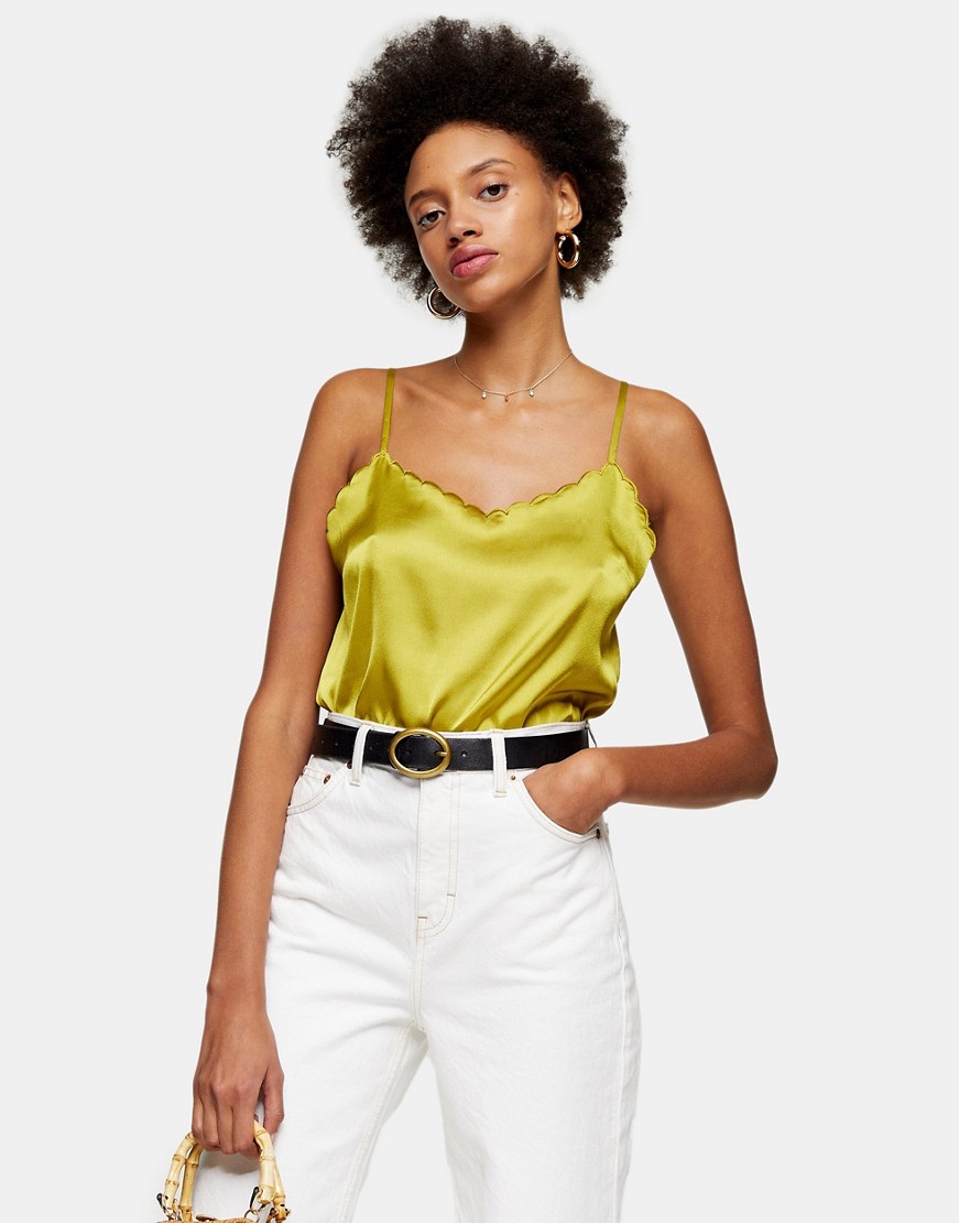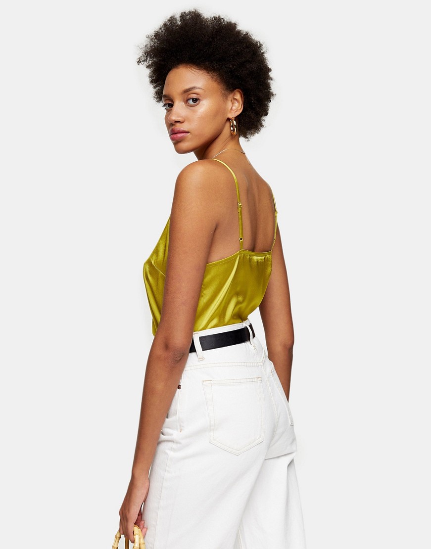 Topshop oliwkowa satynowa bluzka na ramiączkach 36