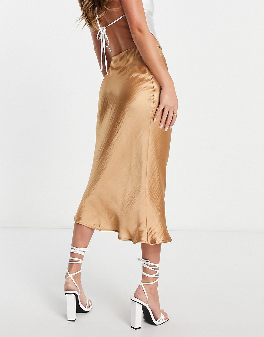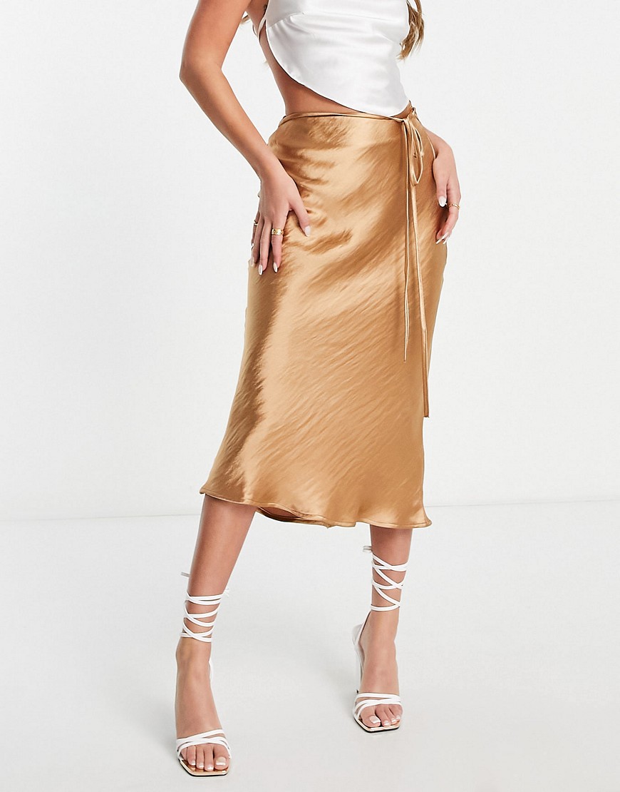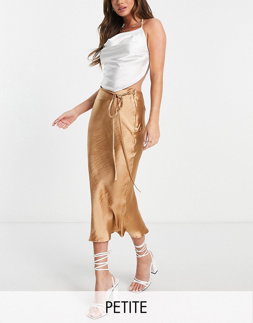 Topshop Petite carmelowa satynowa spódnica midi z wiązaniem w talii defekt 46
