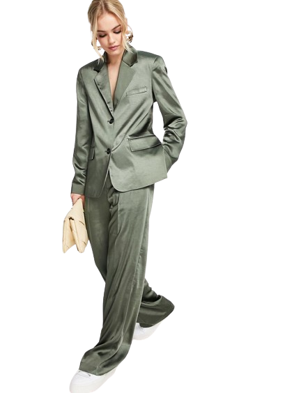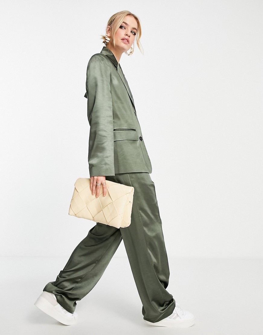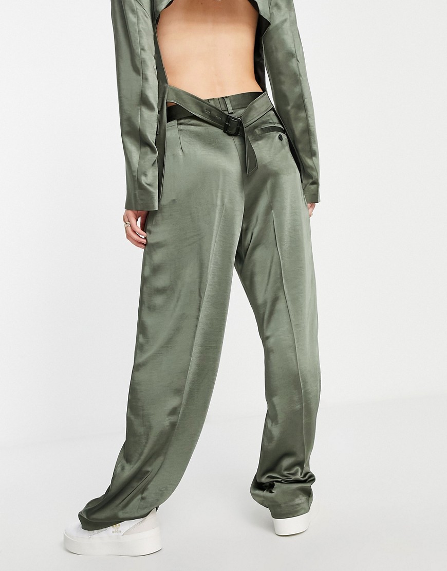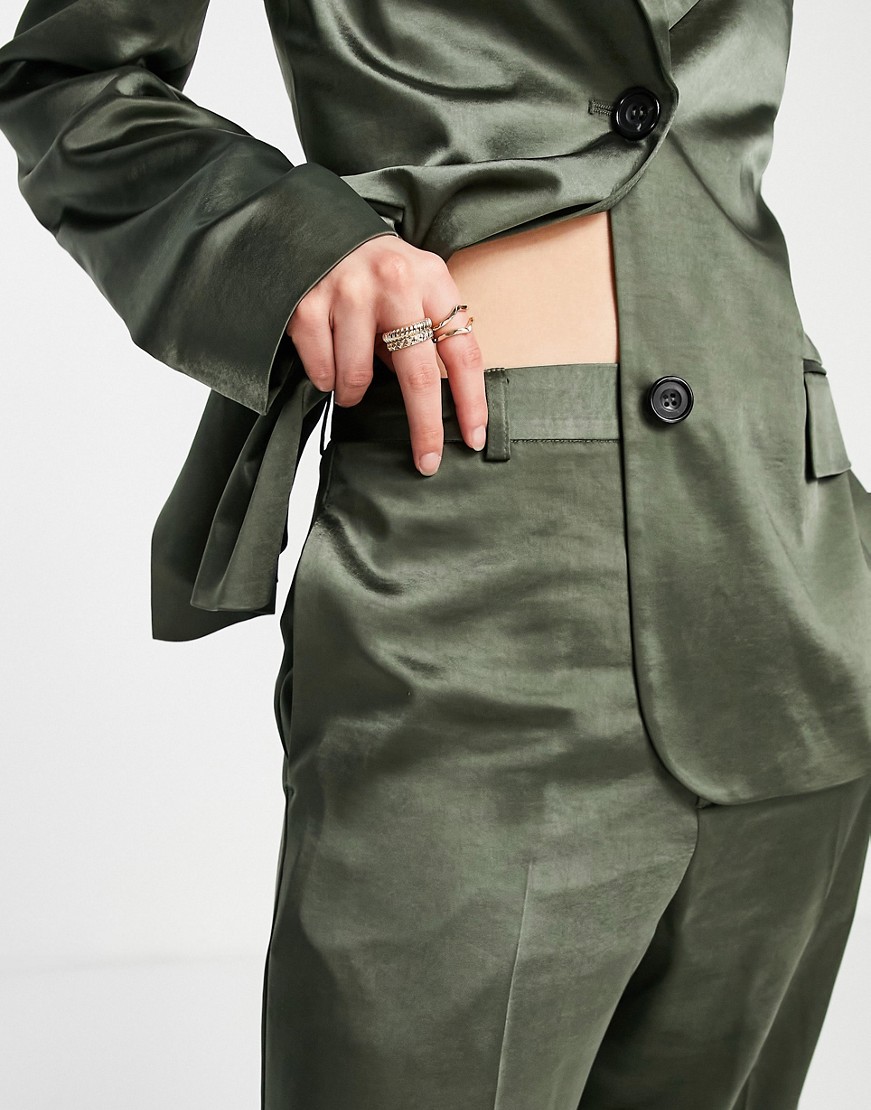 Topshop satynowe spodnie z obniżonym krokiem khaki defekt 46