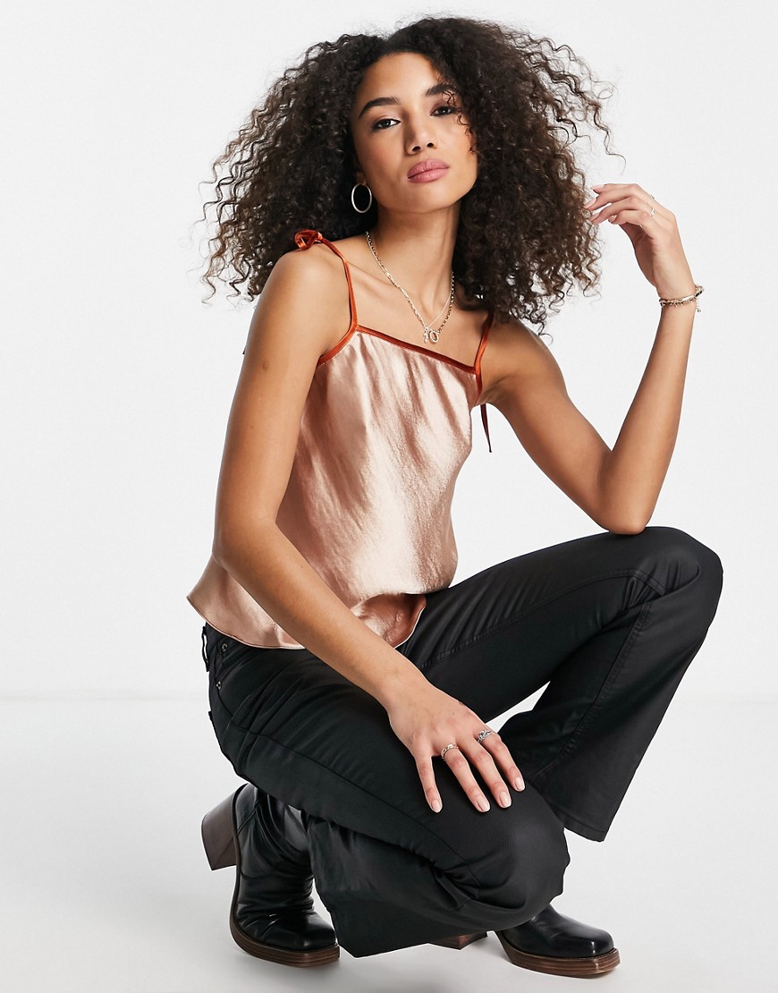 Topshop satynowy top na ramiączkach z blokami kolorów multikolor defekt 46