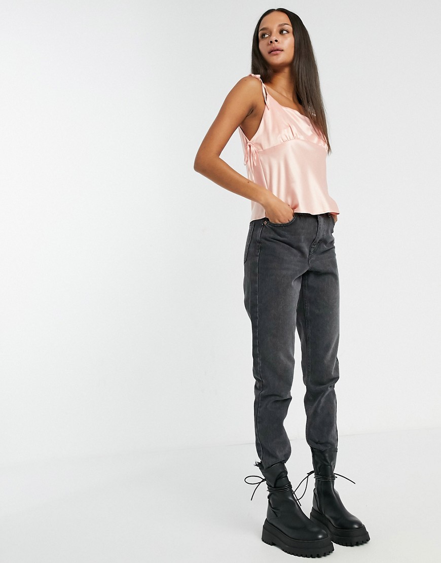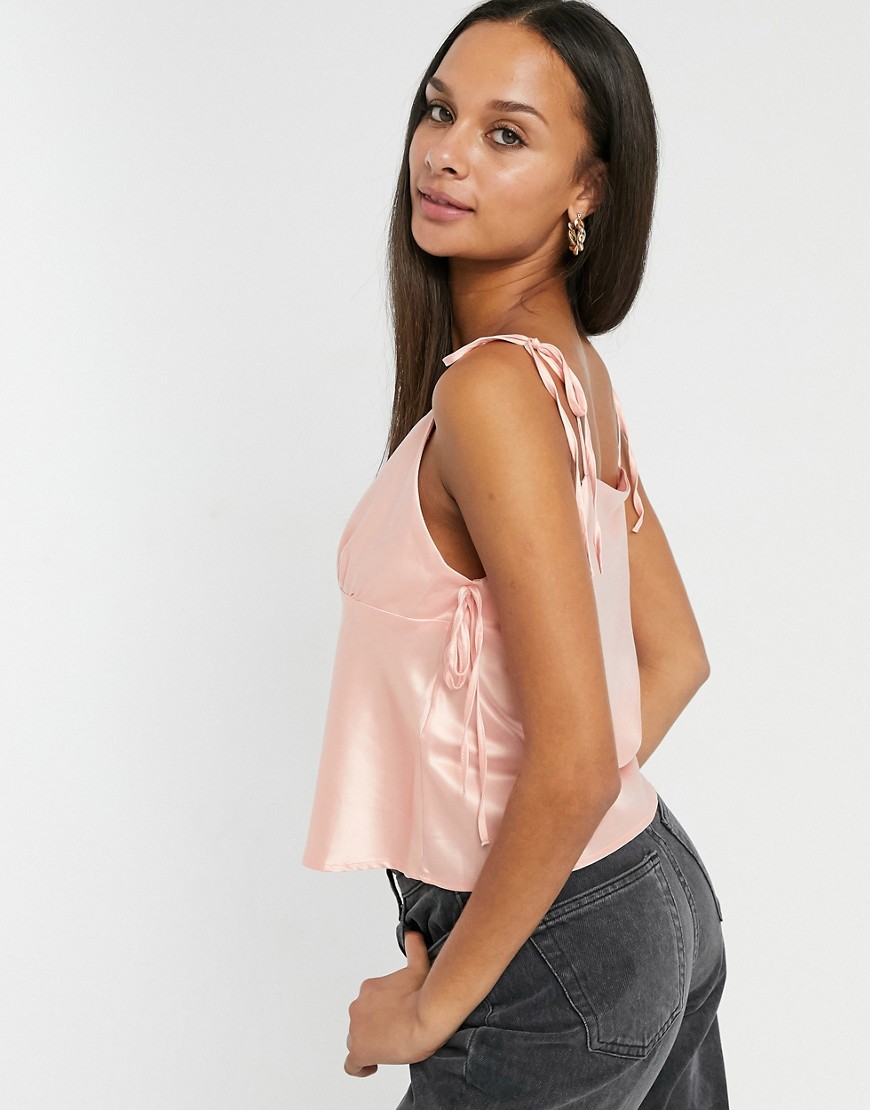 Topshop satynowy top na ramiączkach z kokardkami różowy 40