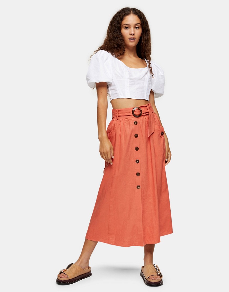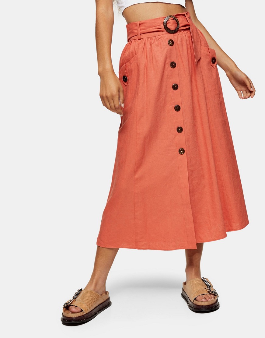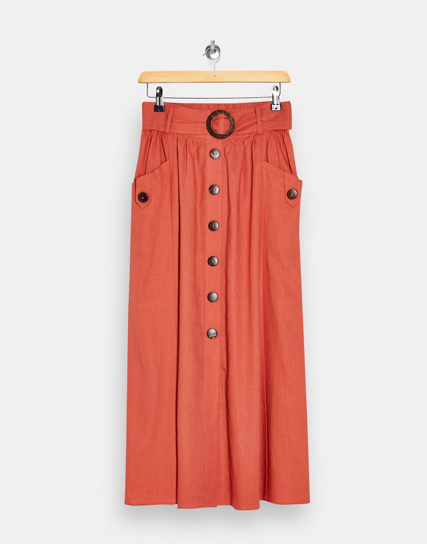 Topshop sukienka midi na guziki z paskiem pomarańczowa 40