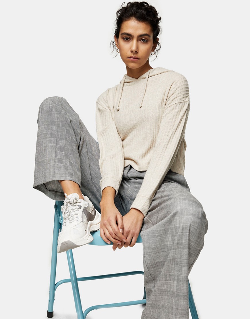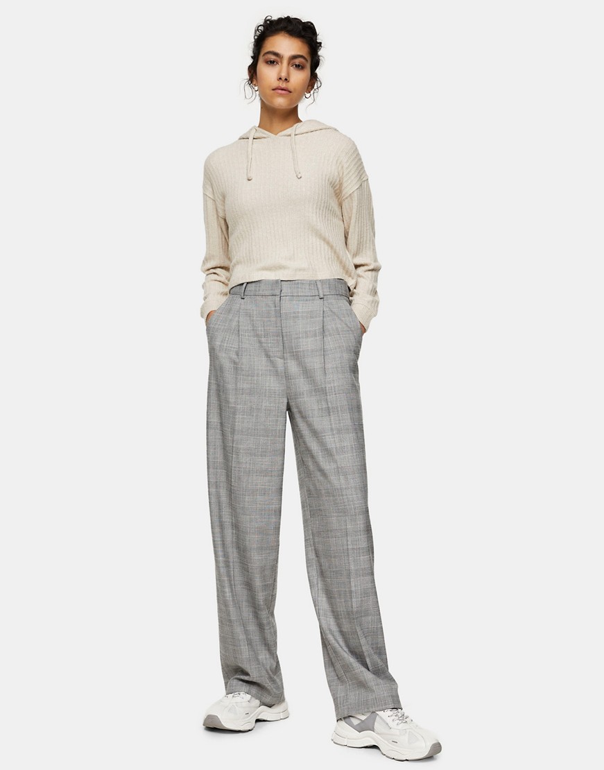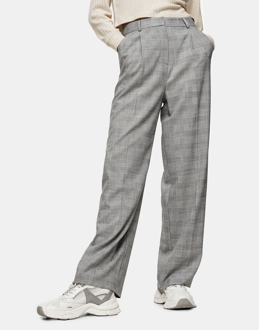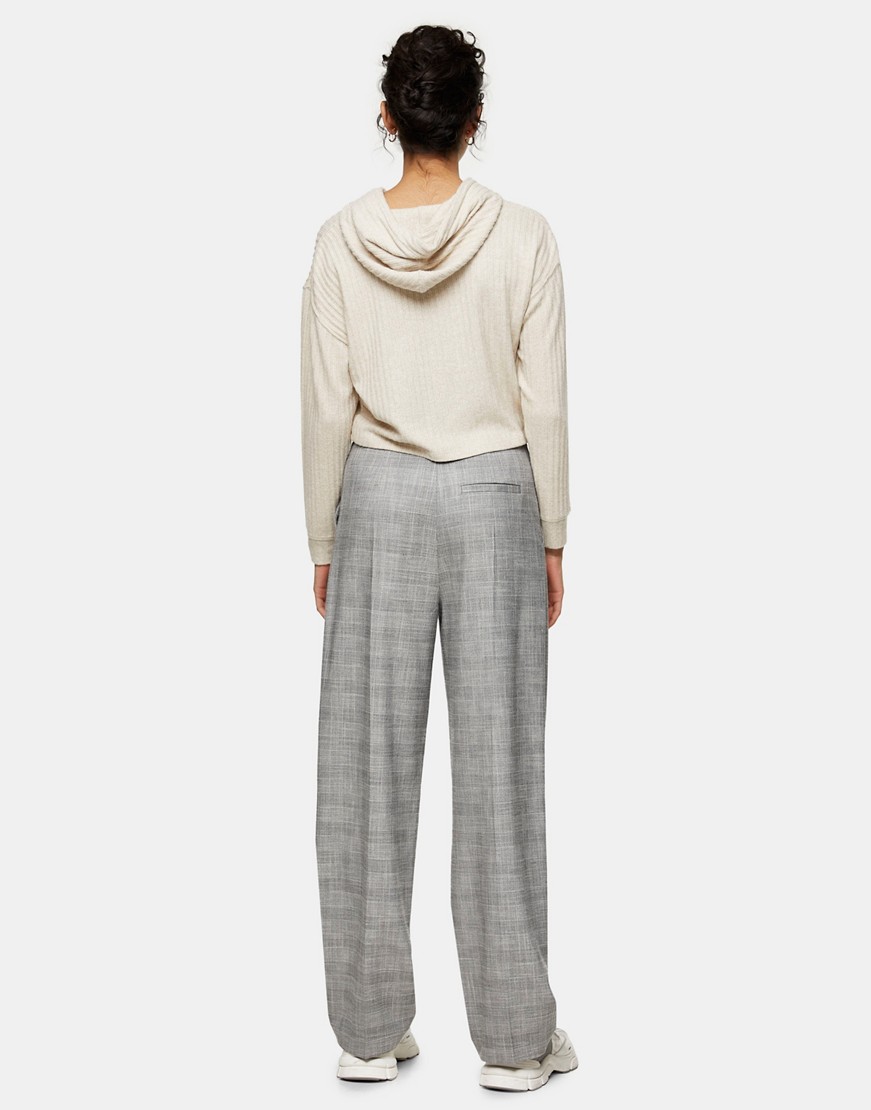 Topshop szare damskie spodnie w kratę szerokie nogawki wide leg podwyższony stan 42