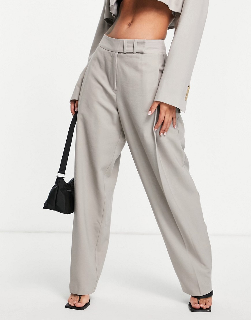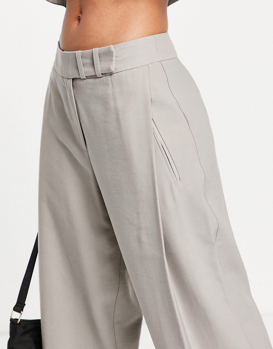 Topshop szare spodnie z szerokimi nogawkami z zakładkami 40