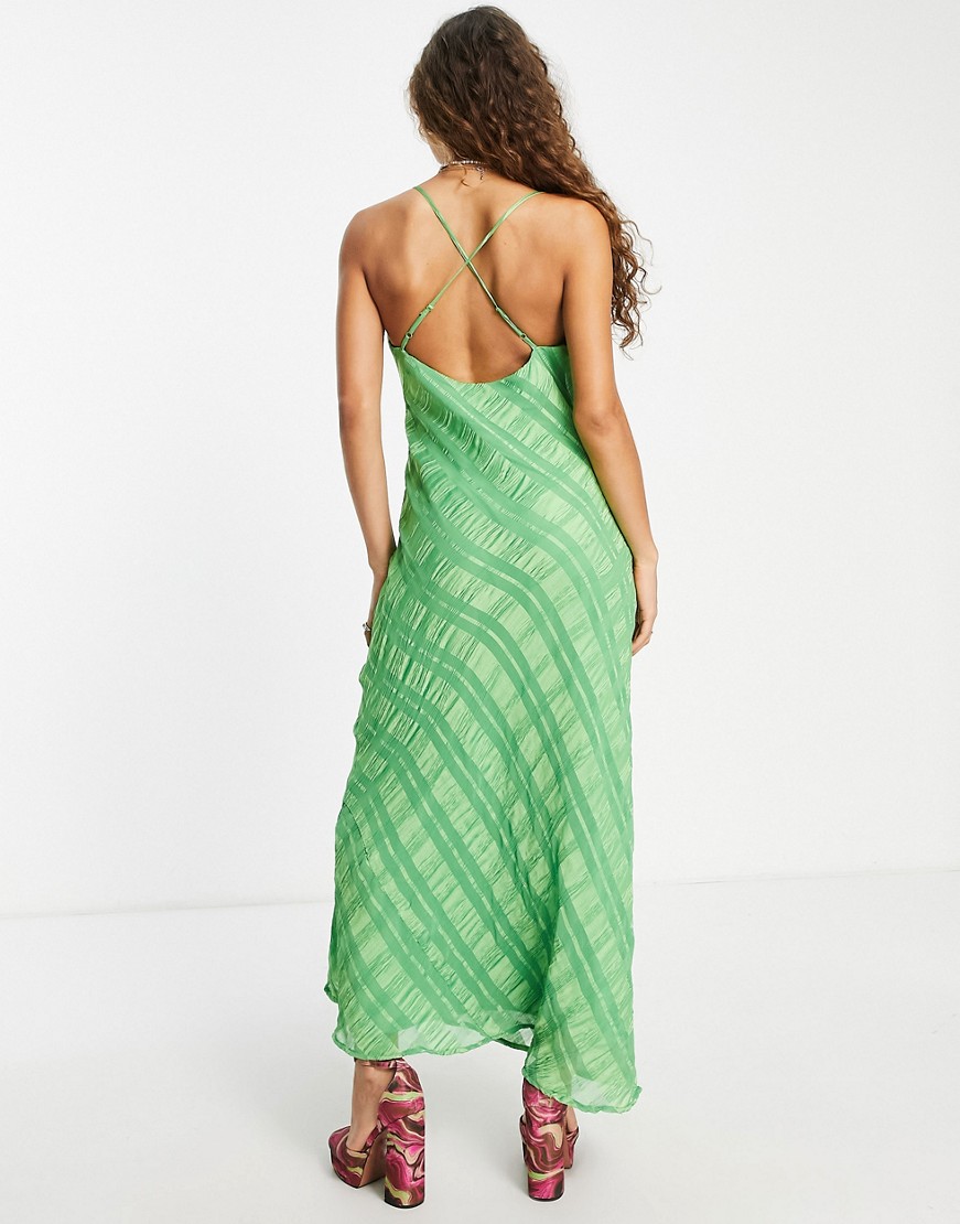 Topshop zielona satynowa sukienka midi na ramiączkach w kratę 36