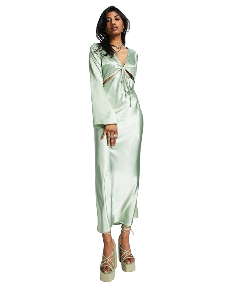 - Tkanina w stylu satyny: błyszcząca, drapowana i jedwabiście gładka
