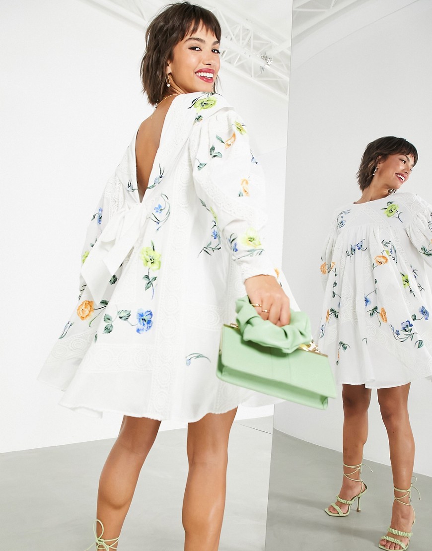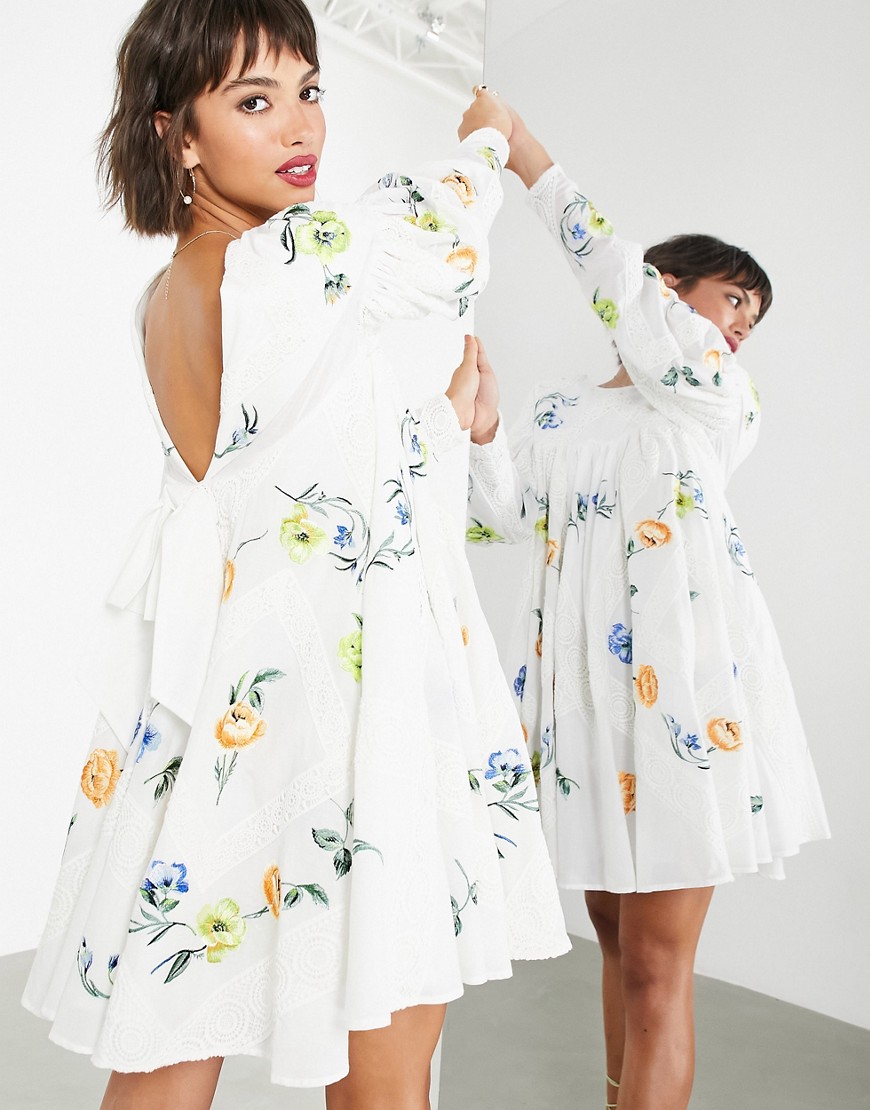- Haftowany kwiatowy wzór na całej długości