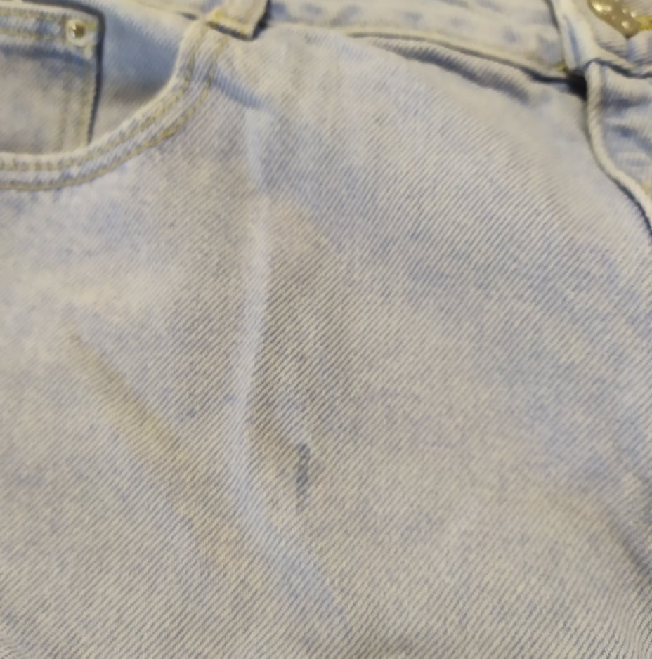 • Defekt : skaza materiału z przodu na nogawce, zdjęcie w galerii produktu