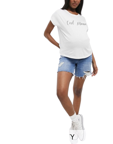 Urban Bliss niebieskie ciążowe wydłużone szorty z podwyższonym stanem i przetarciami 34