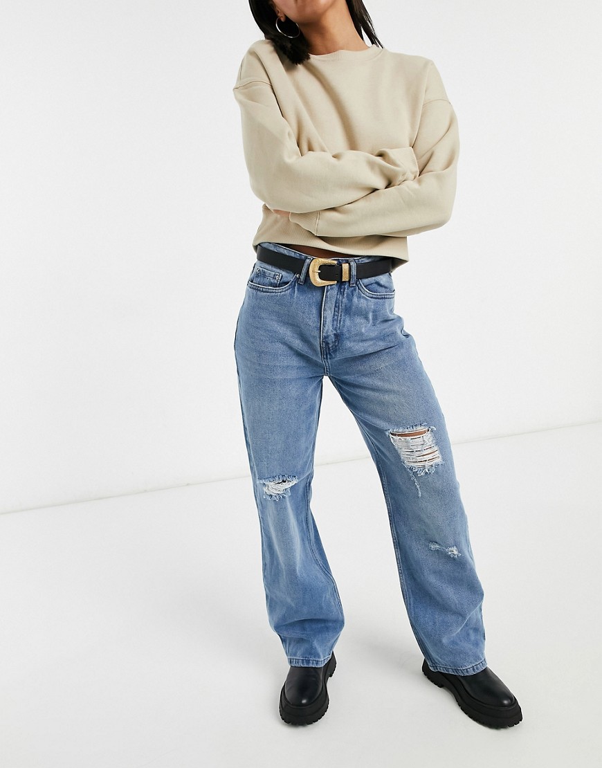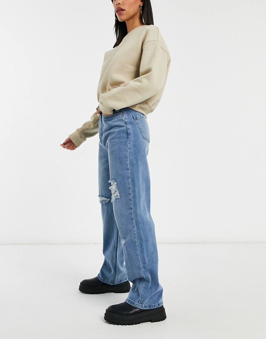 Urban Bliss niebieskie jeansy z podwyższonym stanem szerokimi nogawkami i rozdarciami 36