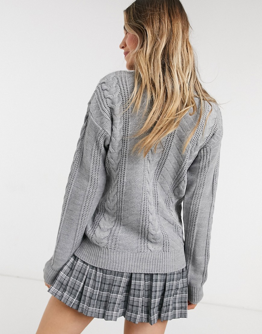 Urban Bliss Szary sweter o splocie warkoczowym z okrągłym dekoltem M