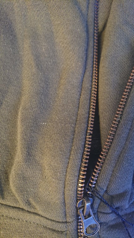 • DEFEKT: minimalne przebarwienie z przodu na kapturze, wygiety ząbek przy zamku u góry na kapturze
