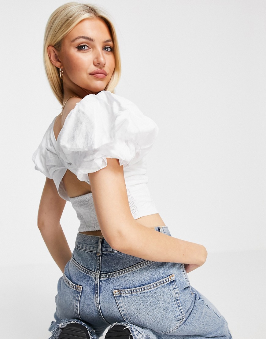 Urban Revivo biała bluzka ze skręconym przodem i bufkami XL