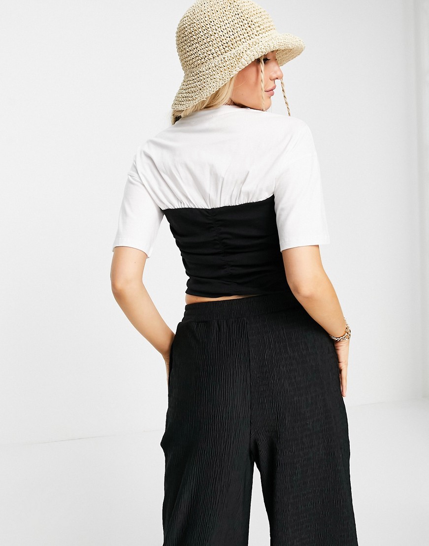 Urban Revivo biało-czarny dżersejowy top z gorsetową wstawką XL