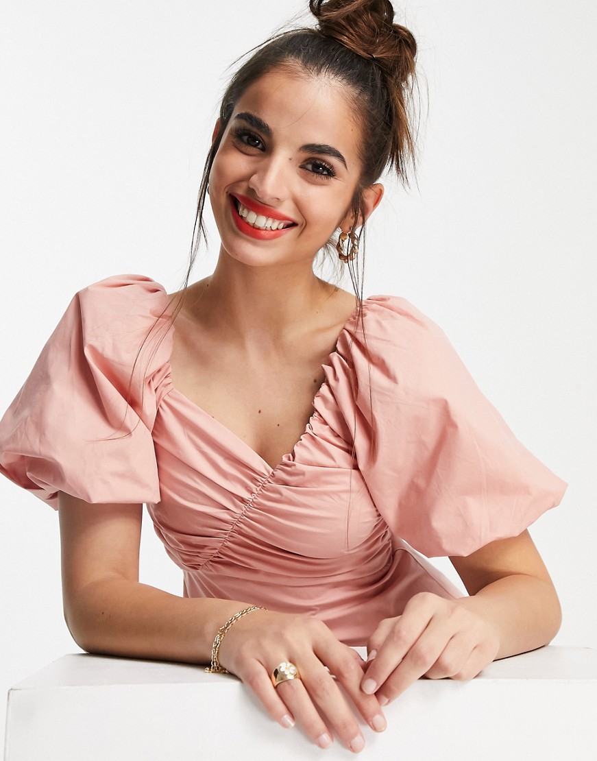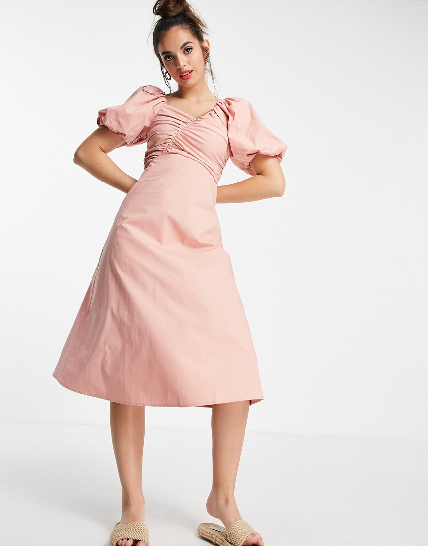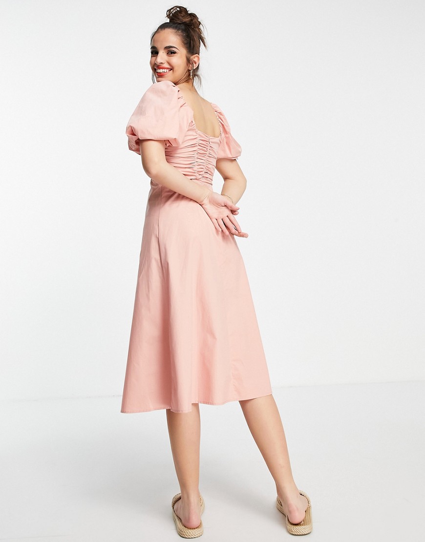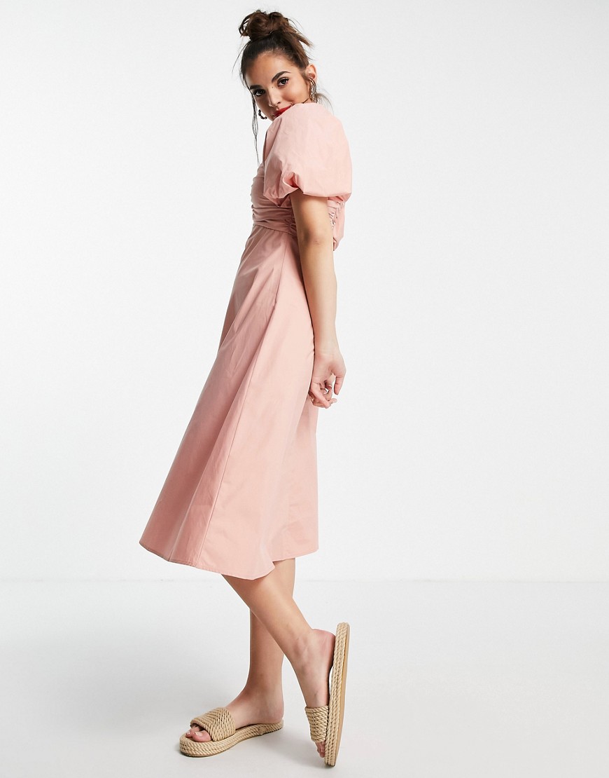 Urban Revivo bladoróżowa sukienka midi z marszczeniem XL