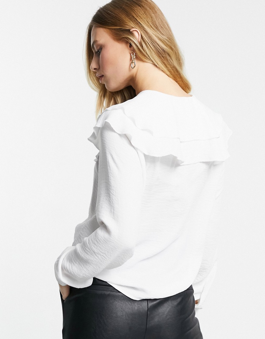 Biała bluzka z ozdobnym kołnierzykiem od Vero Mody
