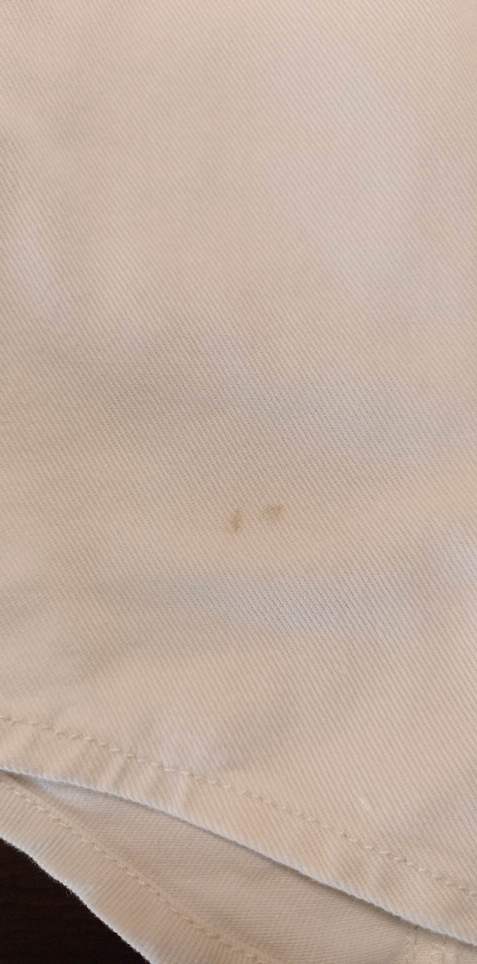 - defekt zabrudzenie z przodu nad kieszenią i z tyłu na dole