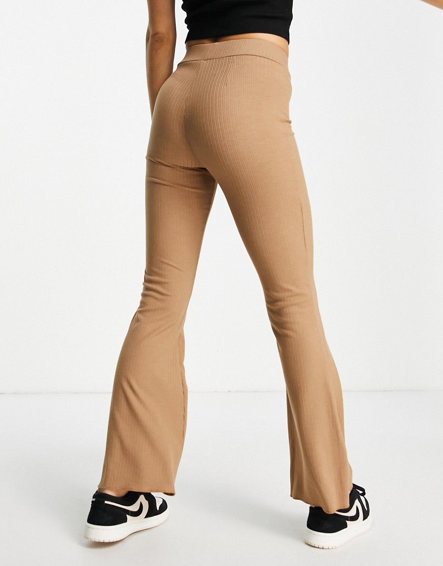 Vero Moda brązowe legginsy dzwony z prążkowanego dżerseju XS