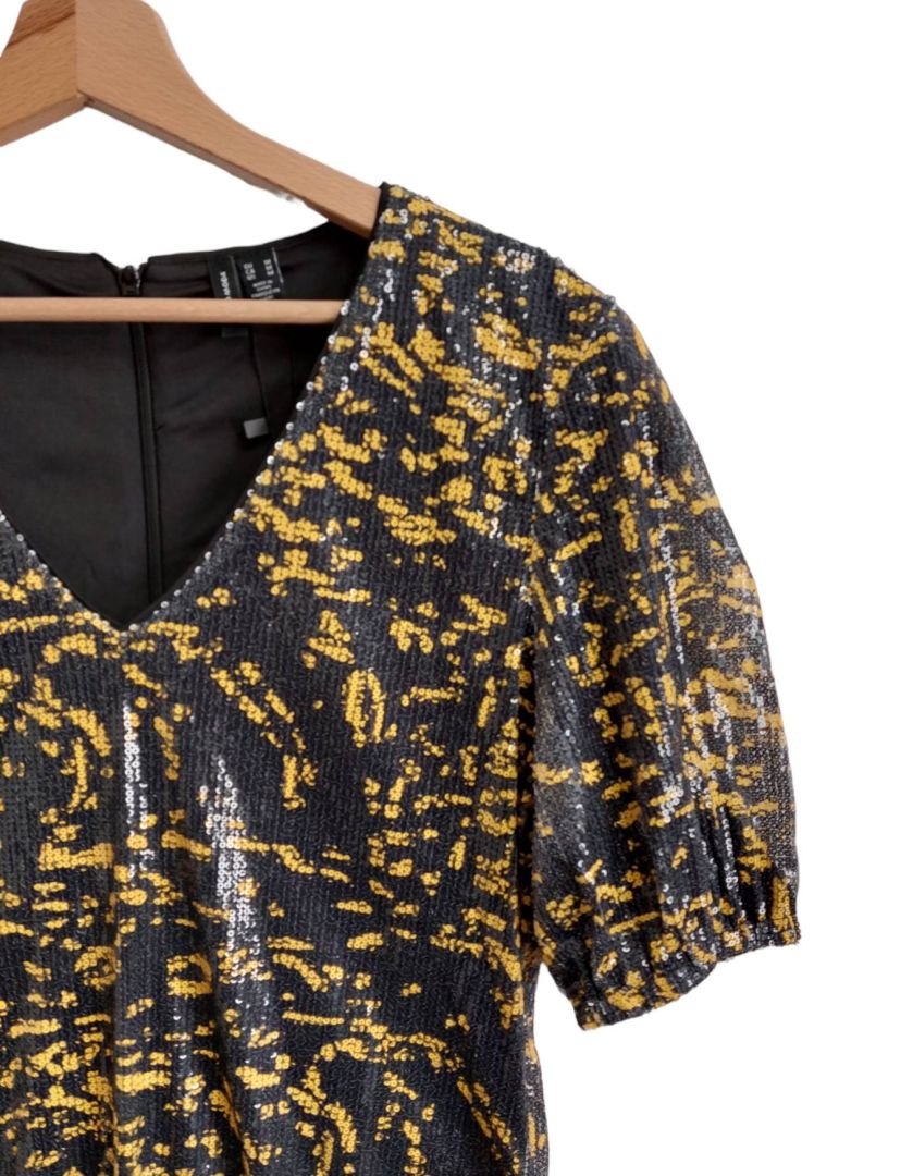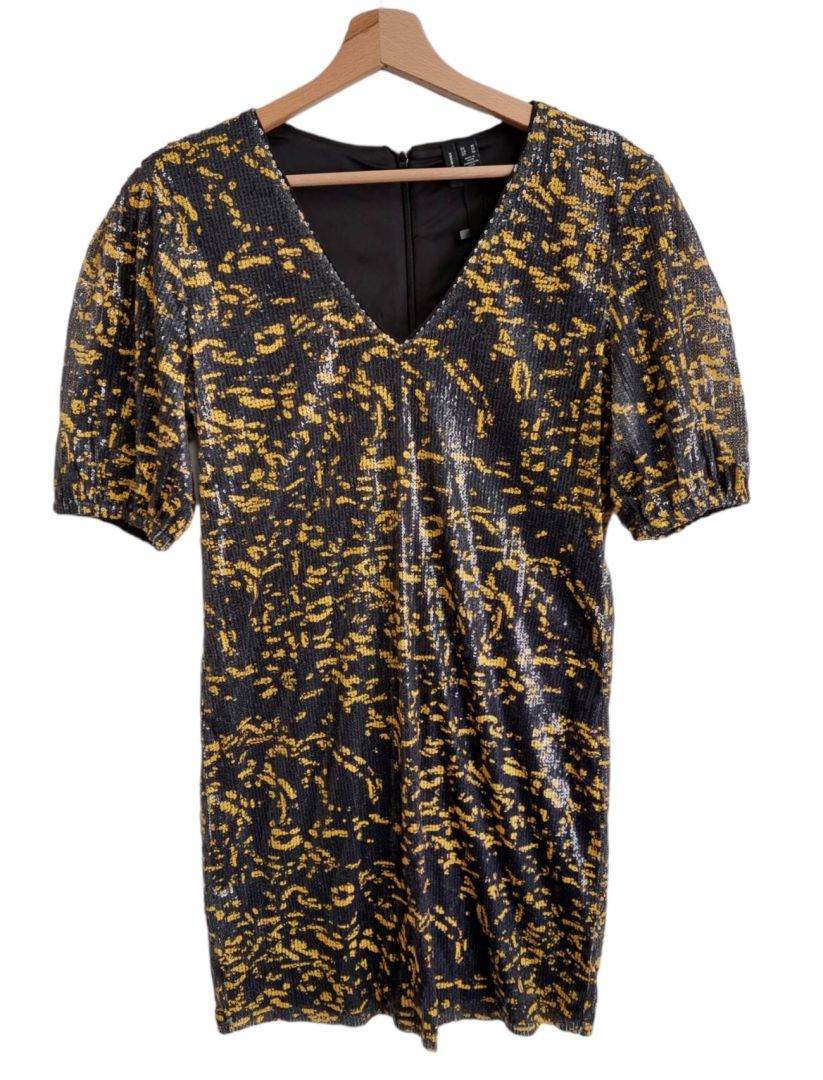 - w calości zdobiona cekinami