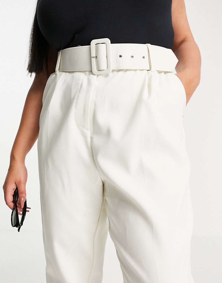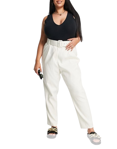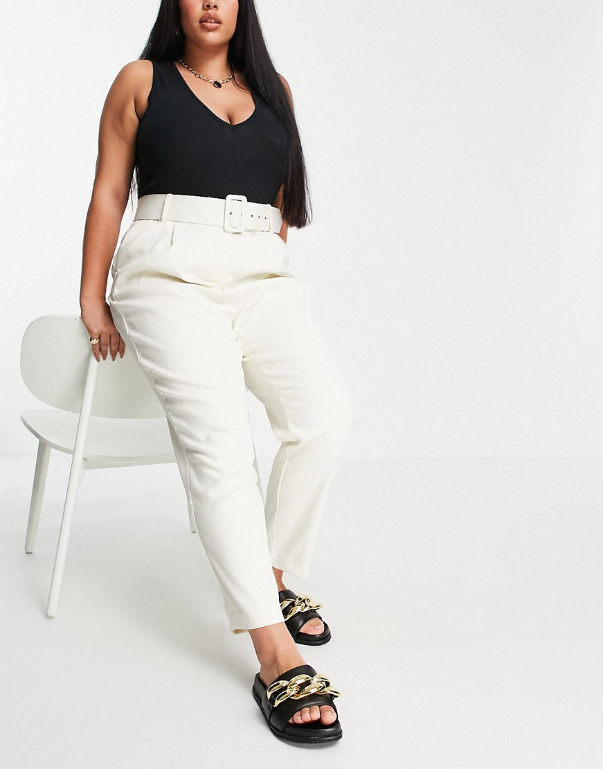 Vero Moda Curve kremowe dopasowane spodnie z zakładkami i paskiem defekt 48