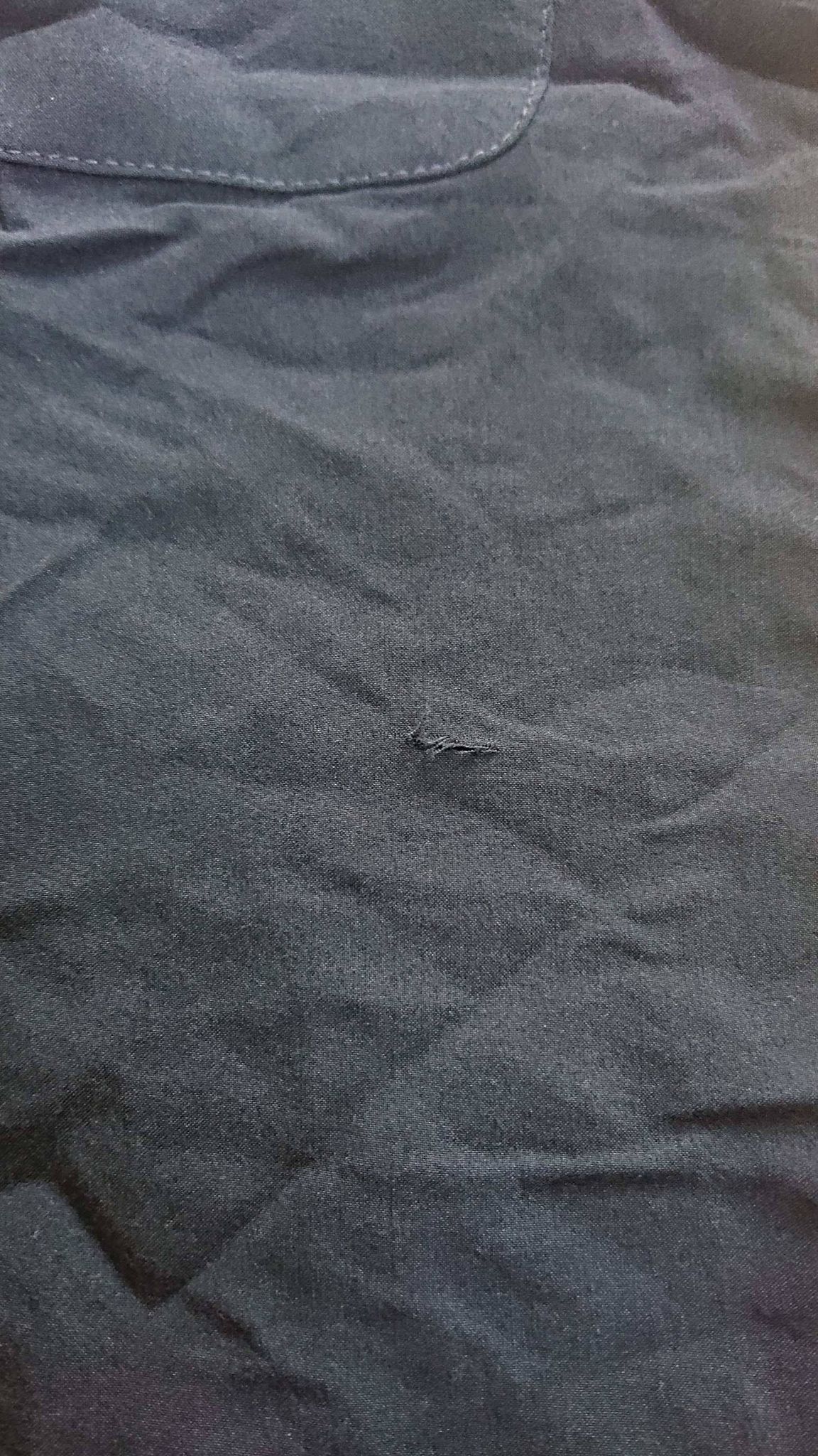 • DEFEKT: Z PRZODU PO LEWEJ STRONIE POD KIESZENIĄ JEST NIEWIELKA DZIURKA