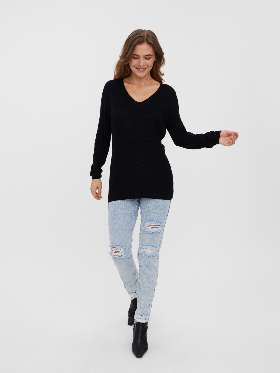 Vero Moda czarny dzianinowe sweter dekolt V M