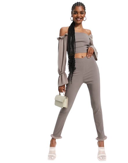 Vesper brązowe dopasowane spodnie z falbanką 38
