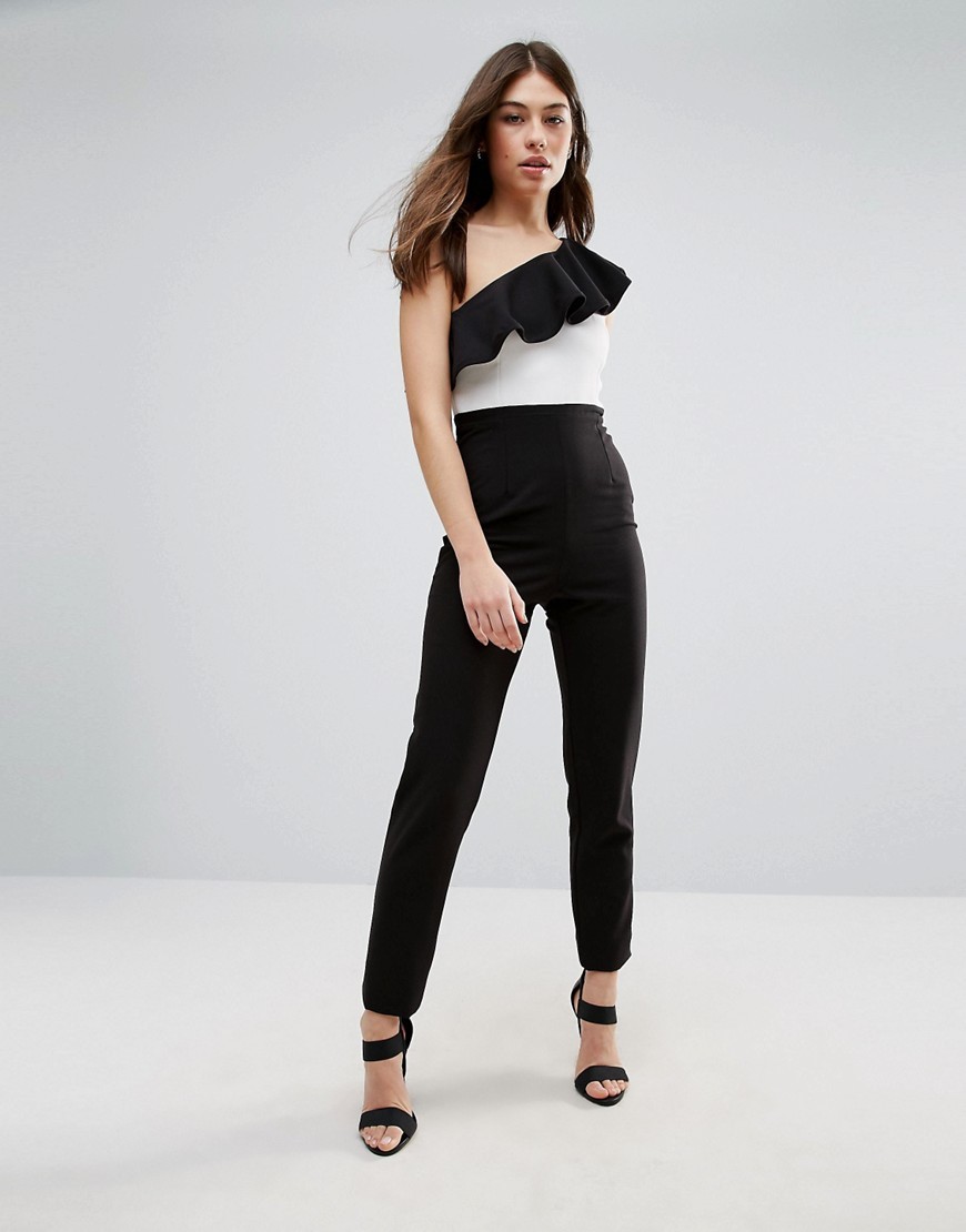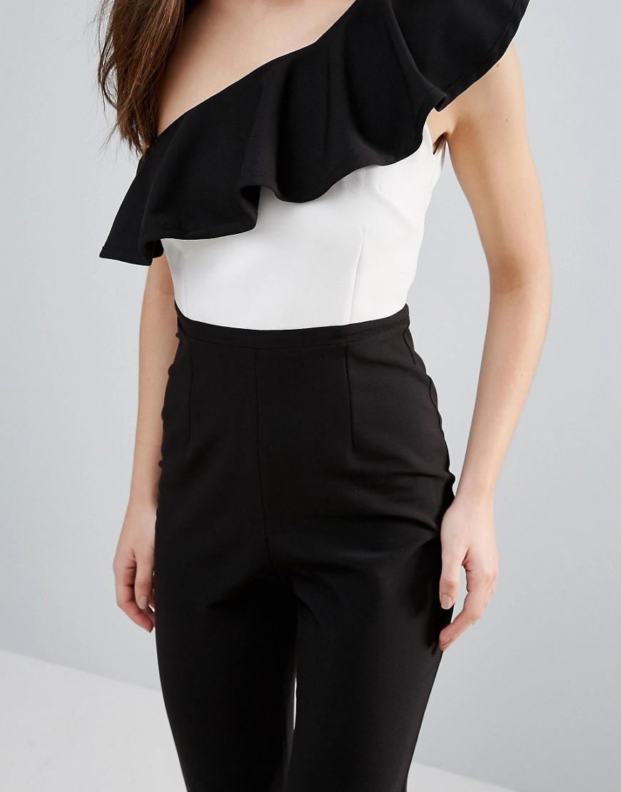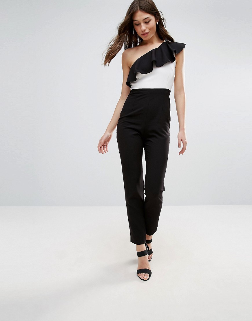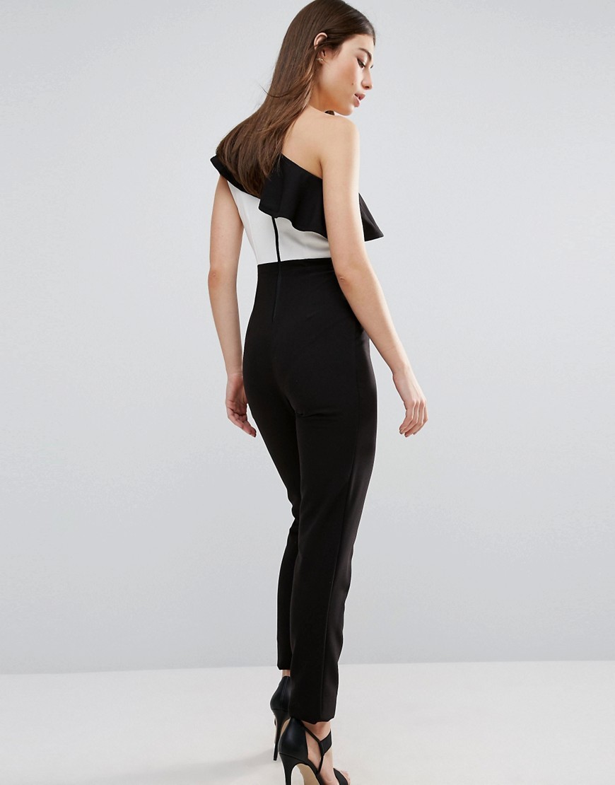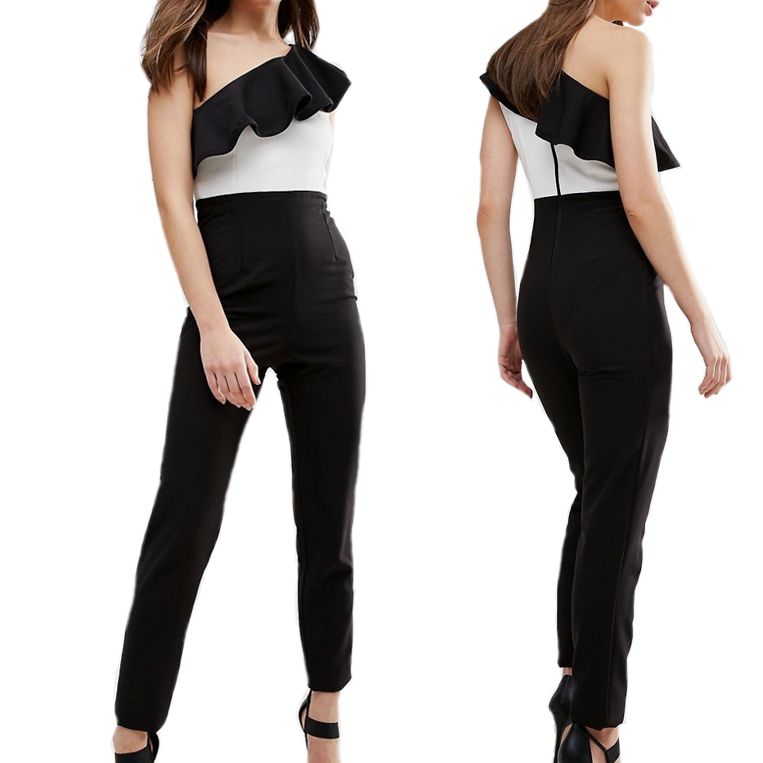 Czarno biały kombinezon na jedno ramię marki VESPER
