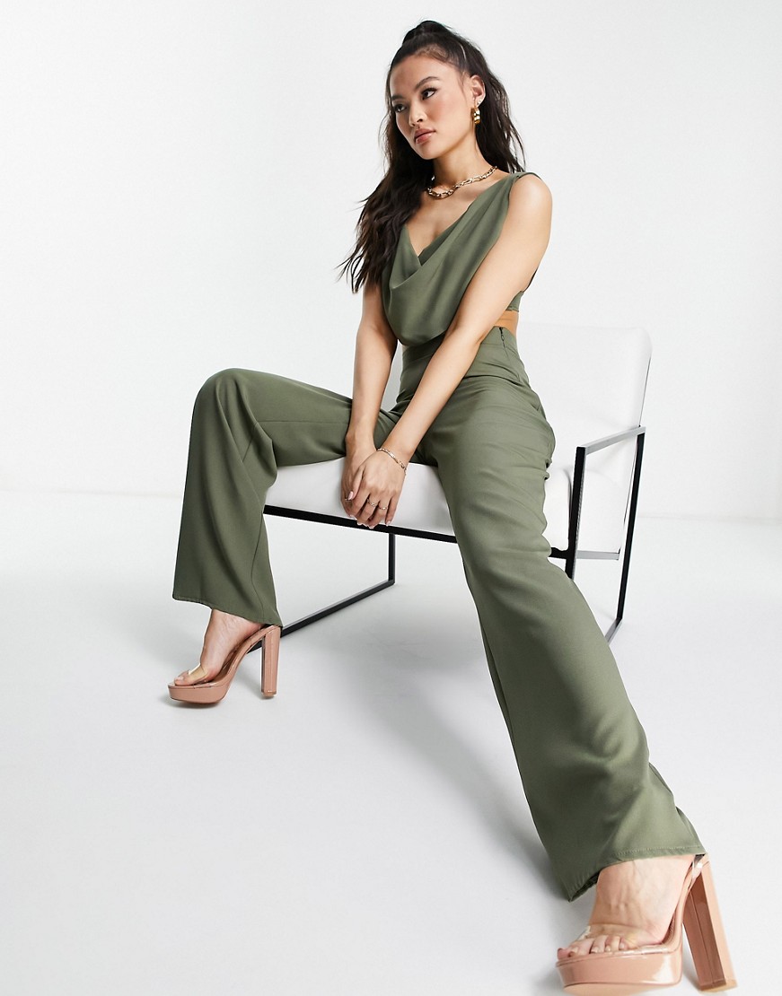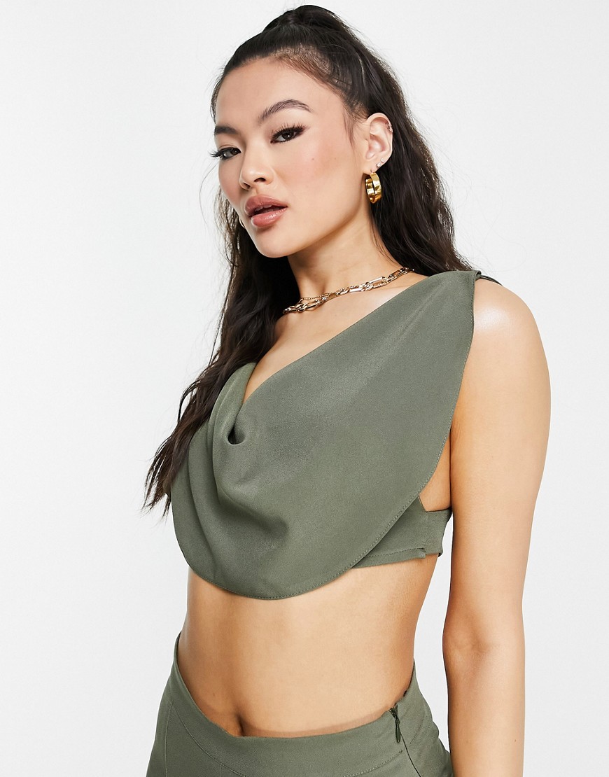 Vesper drapowany krótki top khaki lejący dekolt na ramiączkach 34