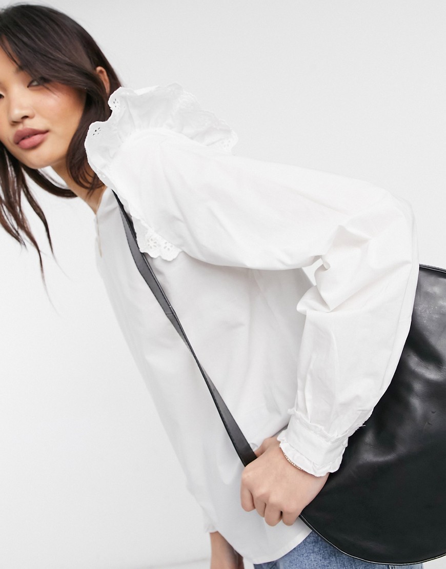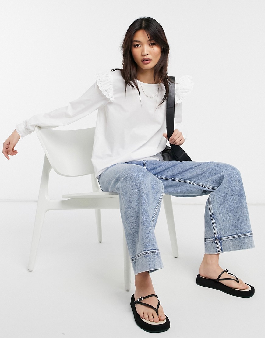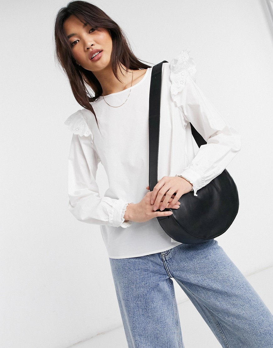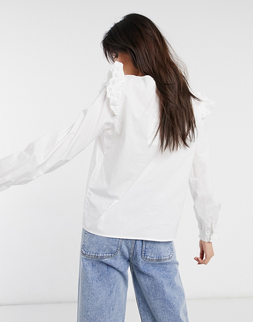 Vila biała bluzka z długim rękawem i falbanką na ramionach 38