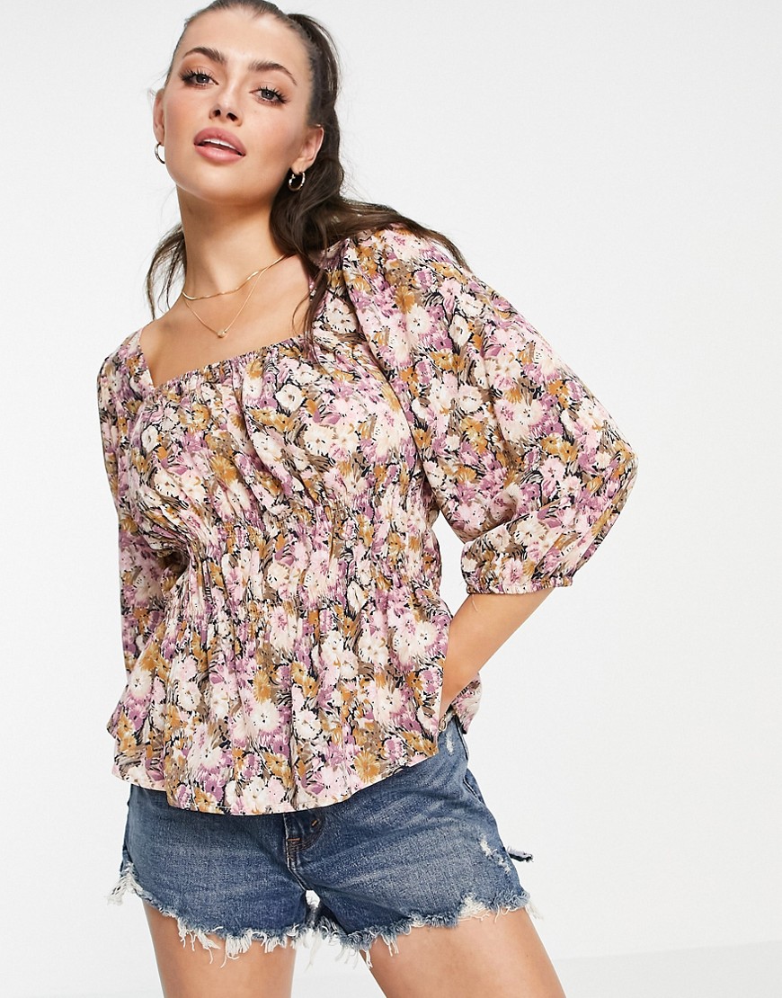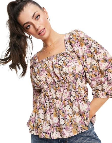 Vila bluzka ze ściągaczem w talii i wzorem w kwiaty 36