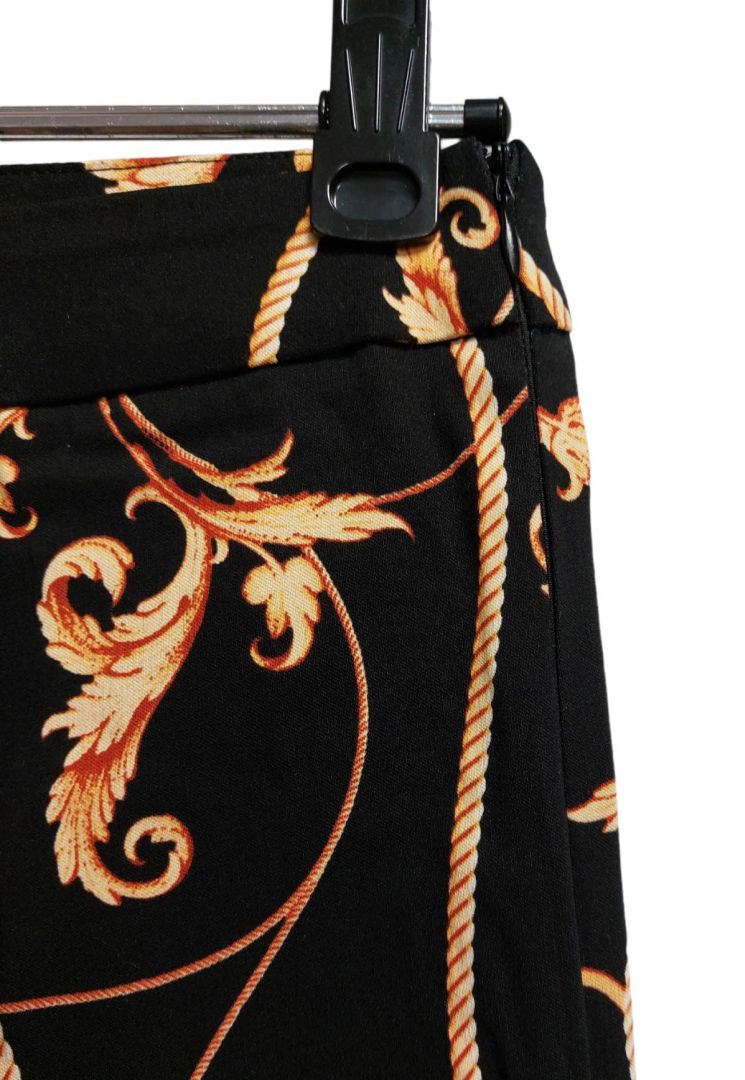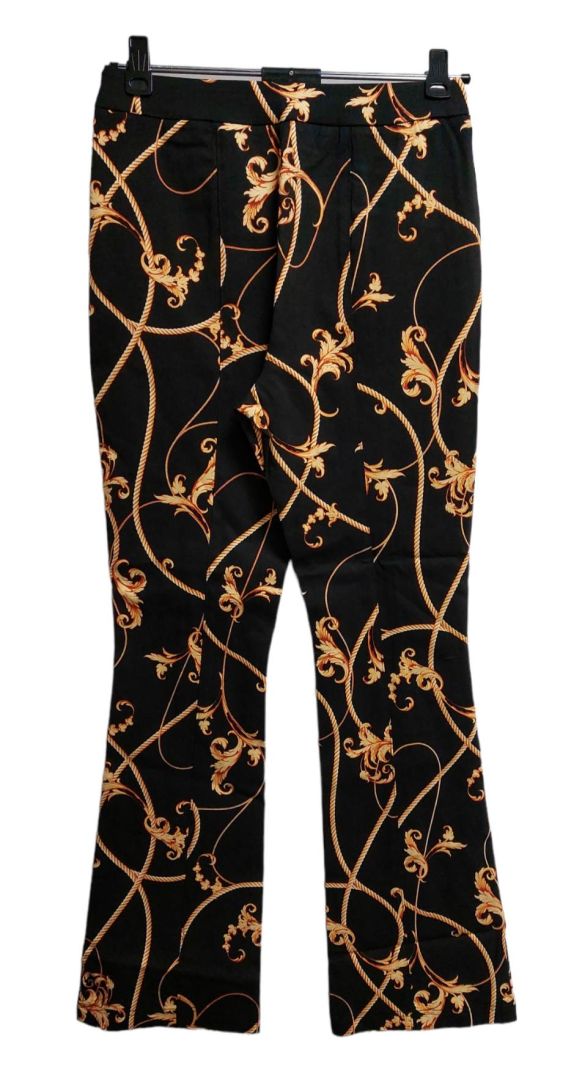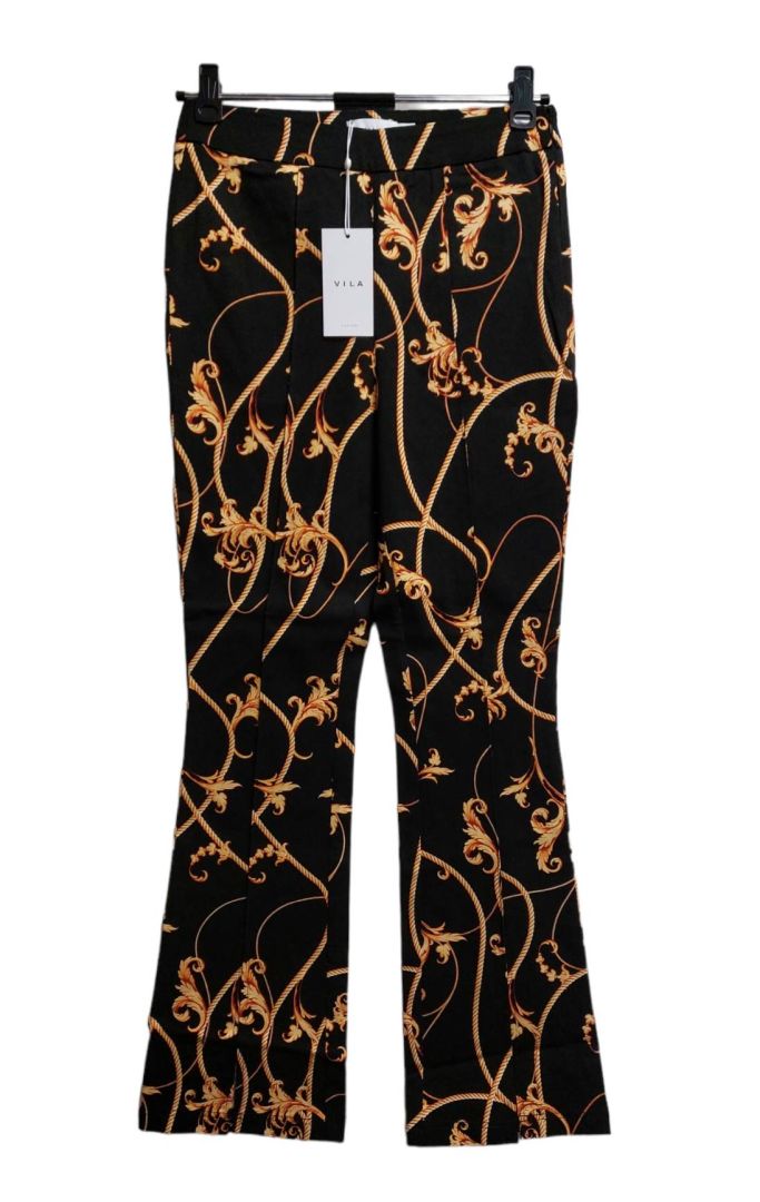 Vila czarne spodnie ze złotym wzorem 38