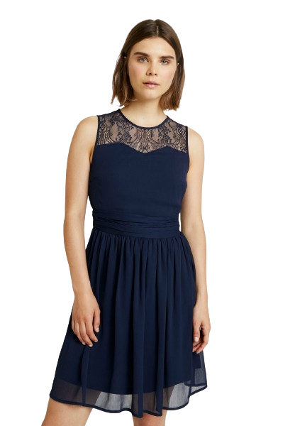 Vila granatowa sukienka koktajlowa bez rękawów z okrągłym dekoltem 36