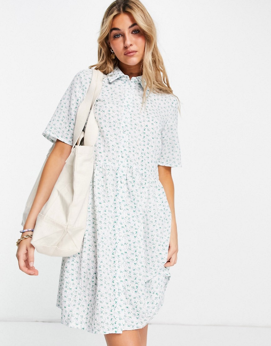 Vila luźna biała sukienka koszulowa z krótkimi rękawami w kwiaty 34