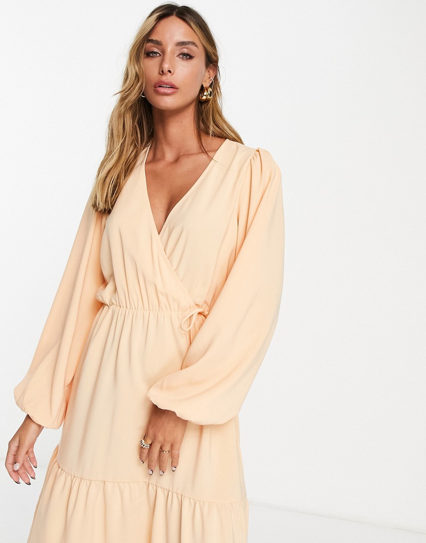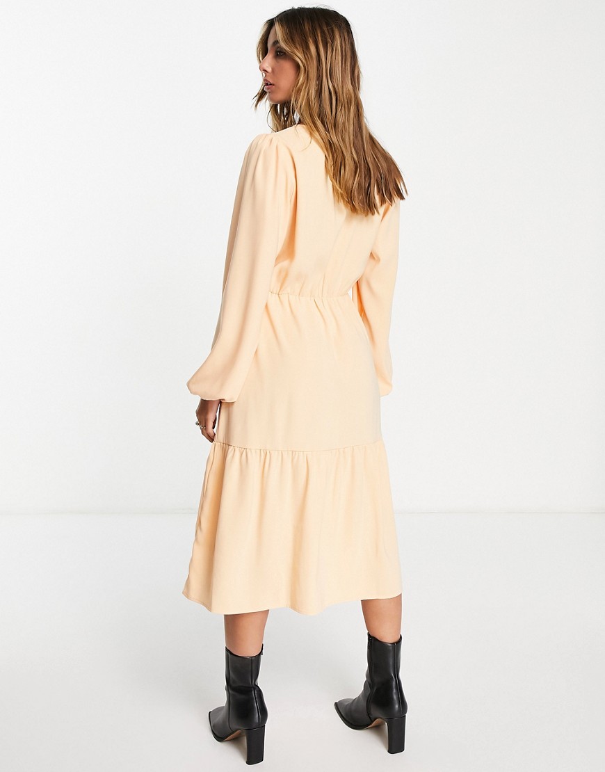Vila morelowa kopertowa sukienka midi z dekoltem w kształcie litery V defekt M