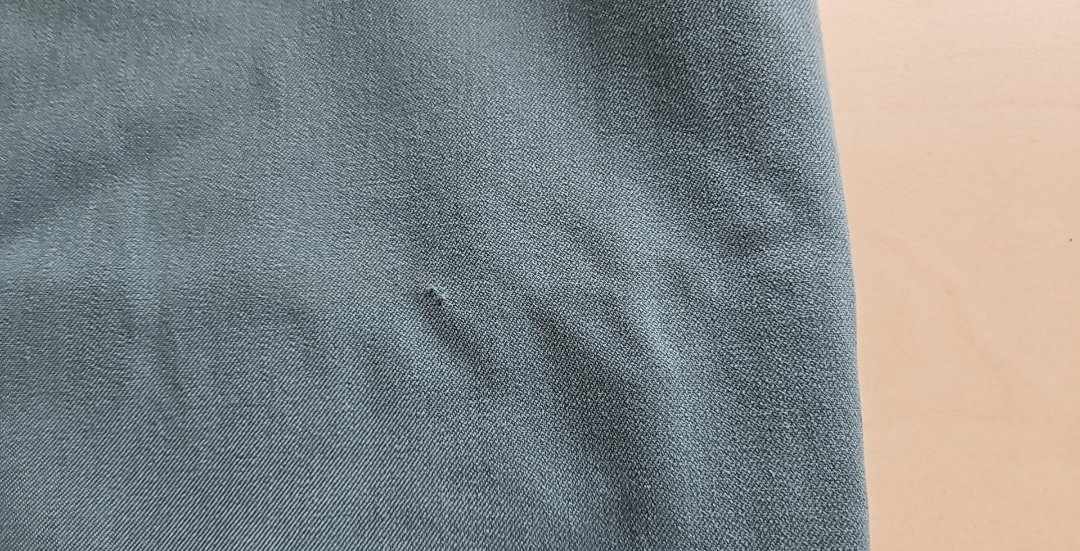 - defekt małe zaciągnięcie z tyłu na nogawce, delikatne zabrudzenie, zdjęcie w galerii produktu
