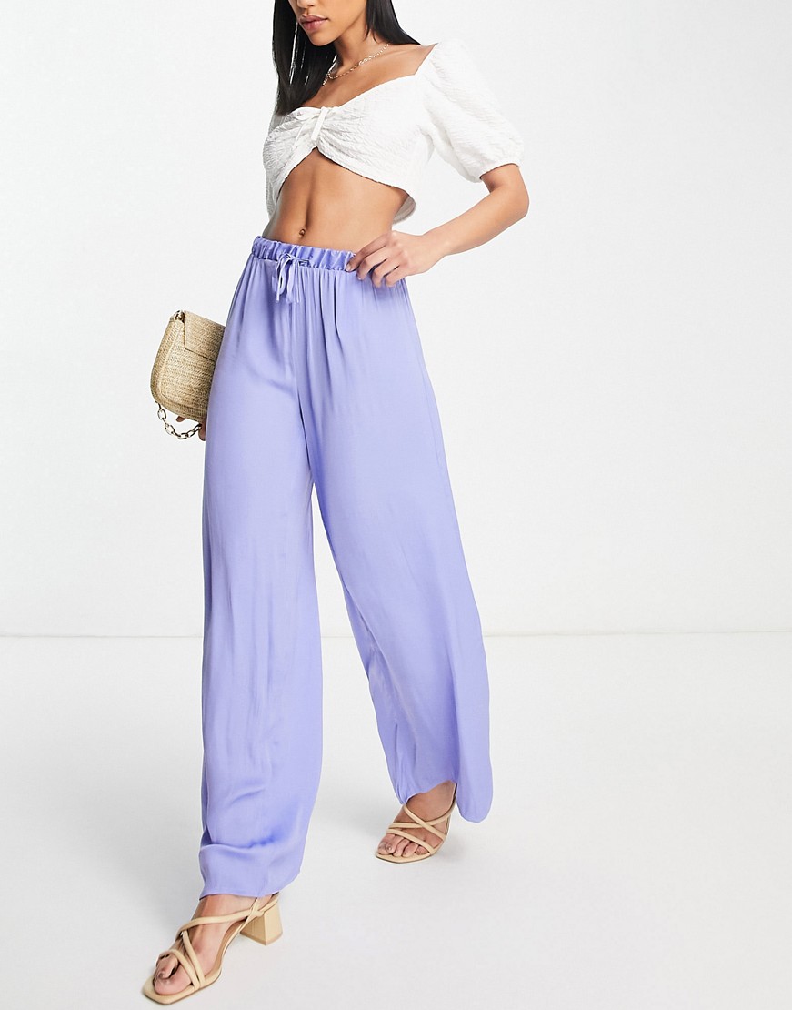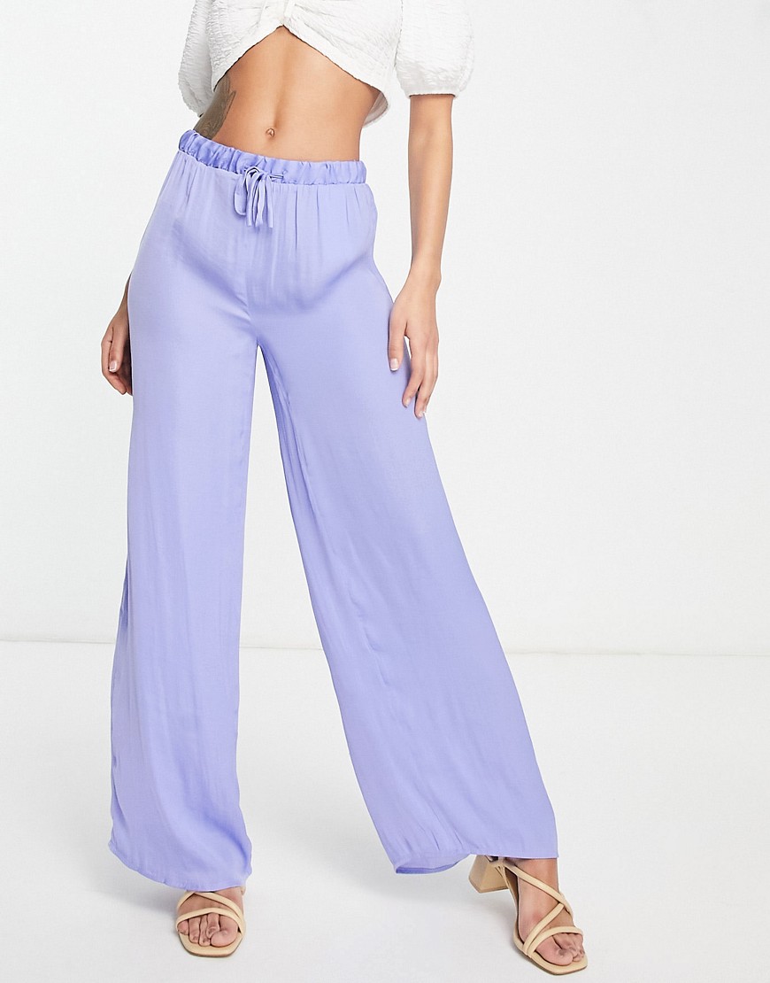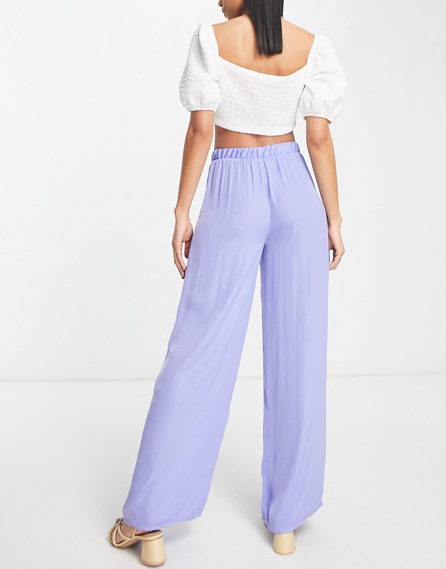 Vila szerokie nogawki jedwabiste spodnie w kolorze liliowym 40