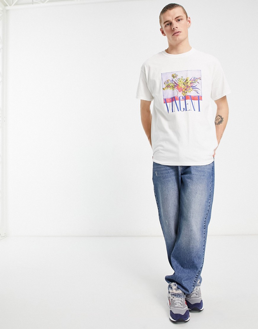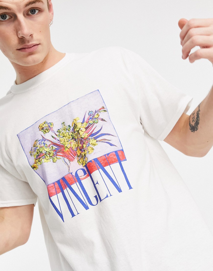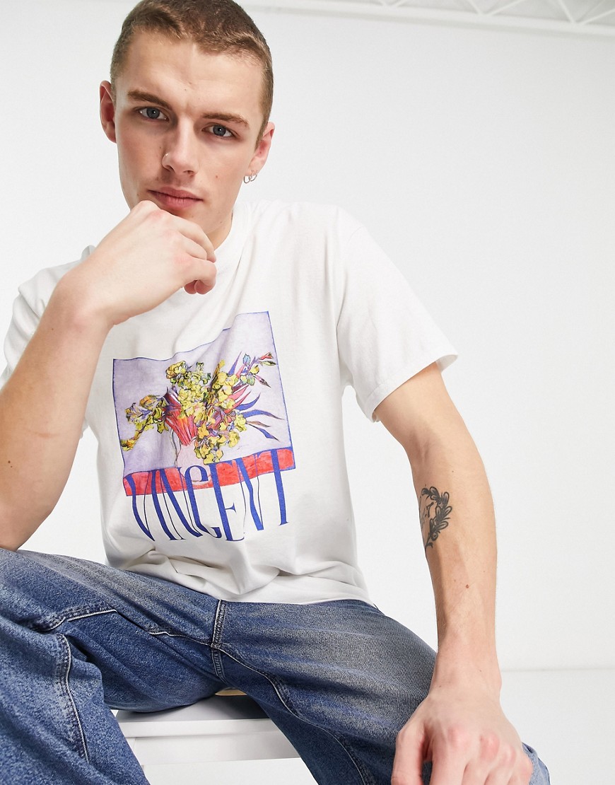 Vintage Supply męski biały T-shirt z artystycznym nadrukiem i napisem S