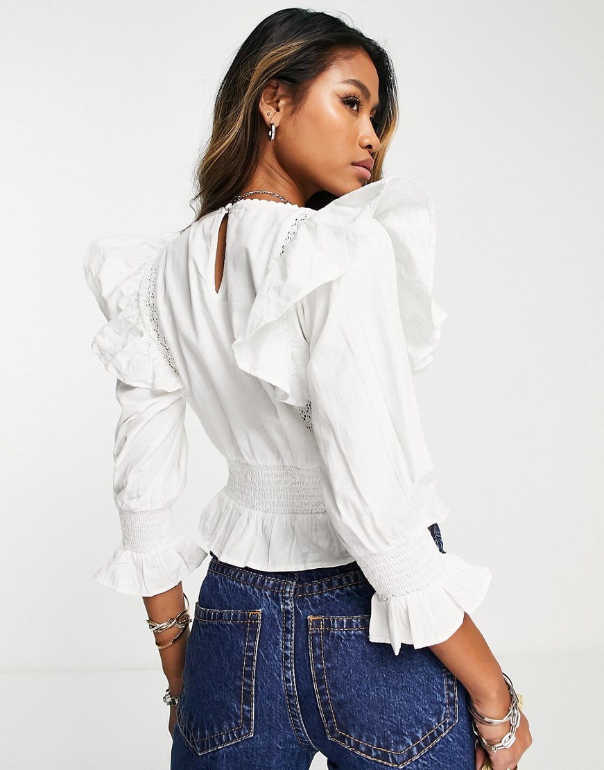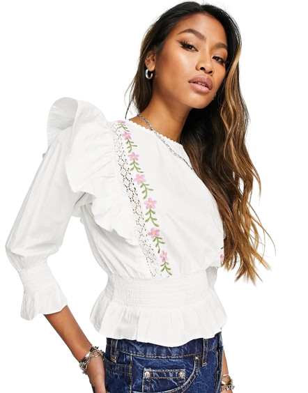 - Rękawy wykończone falbanką