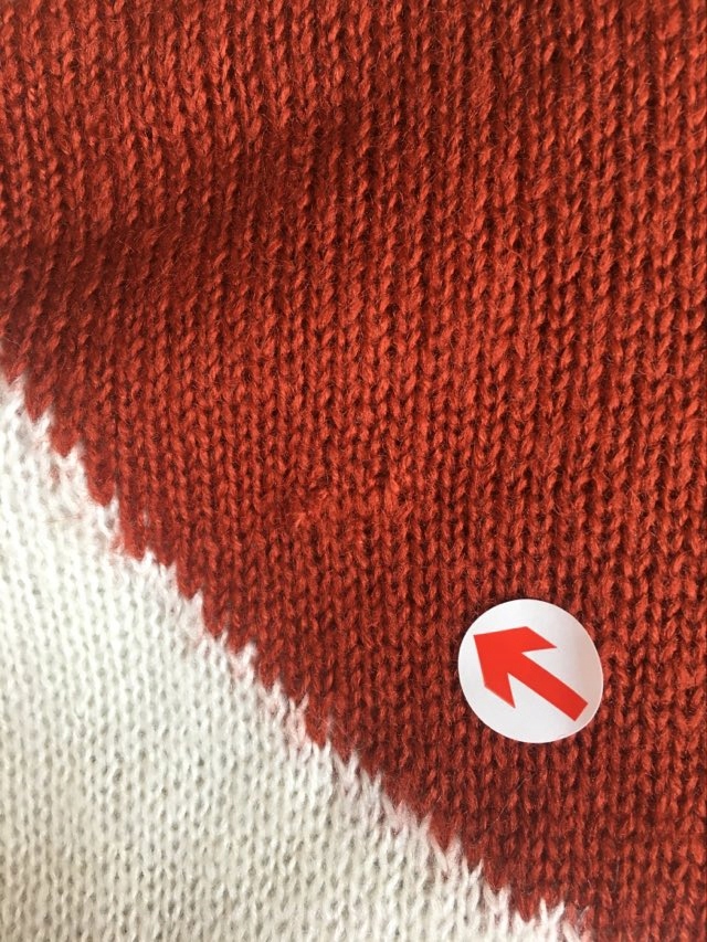 - Defekt: grubsza nić przy golfie oraz rękawie- wada fabryczna, dziurka na rękawie.