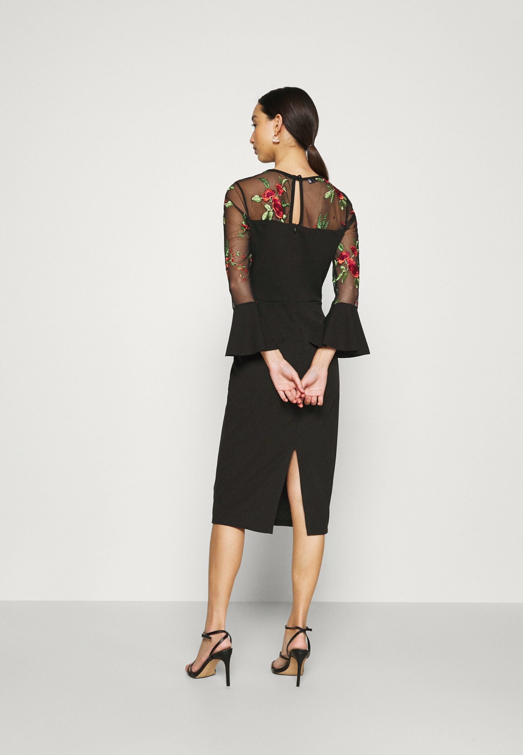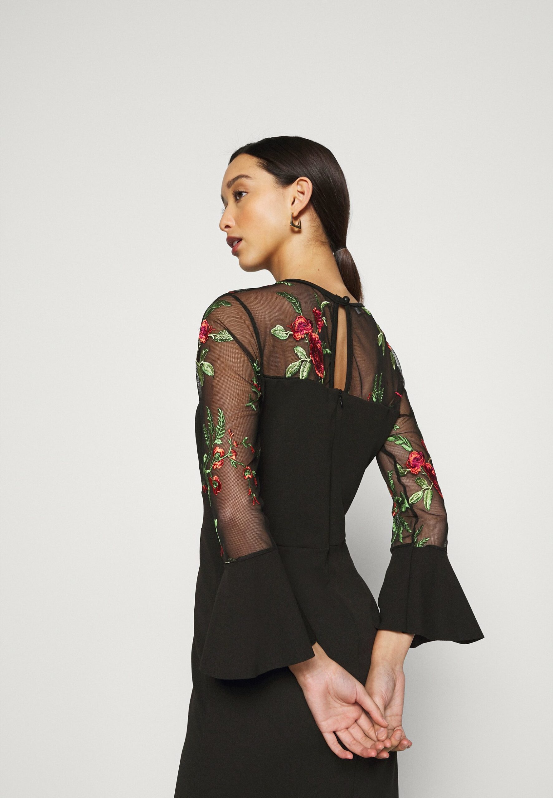 • długie rękawy z falbankami