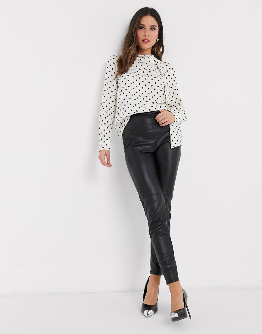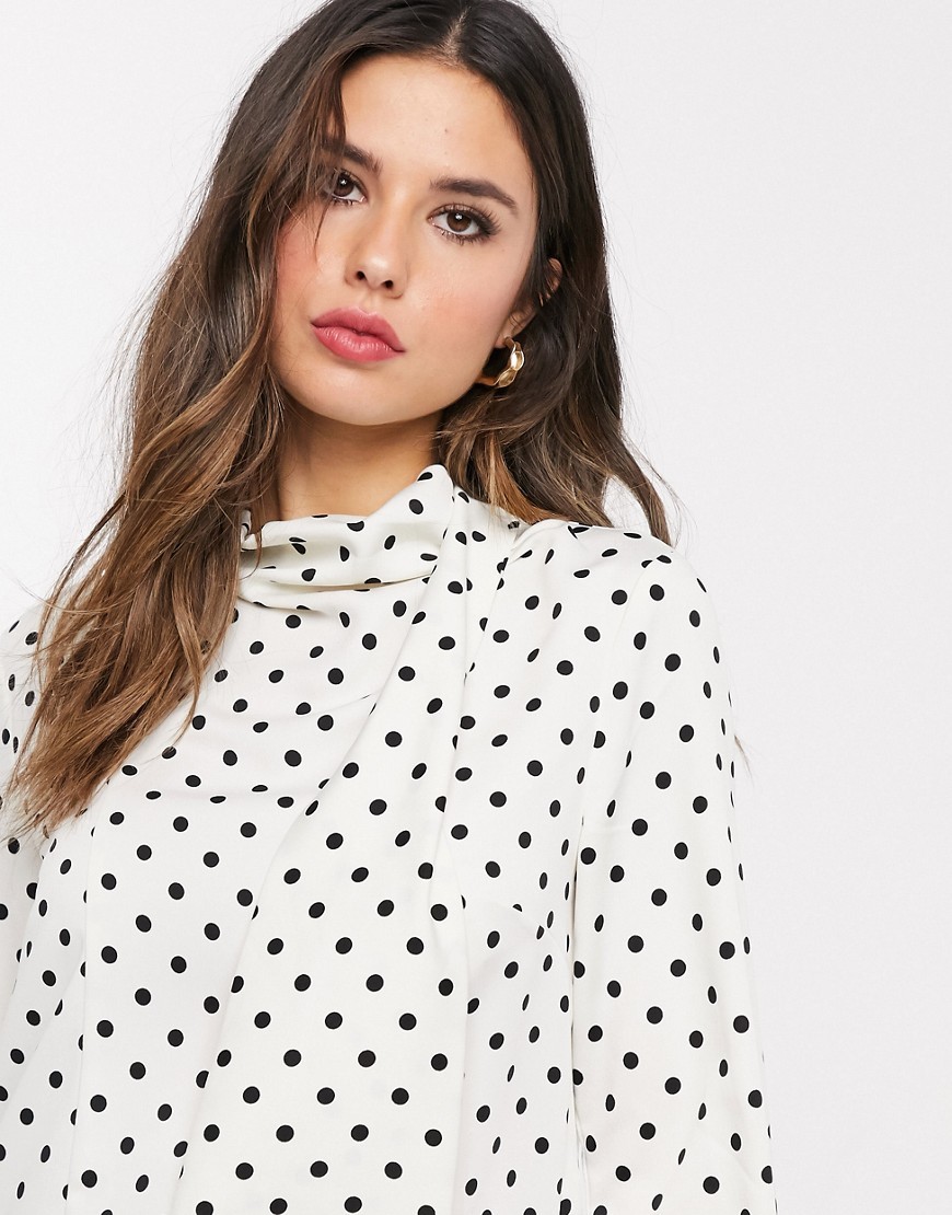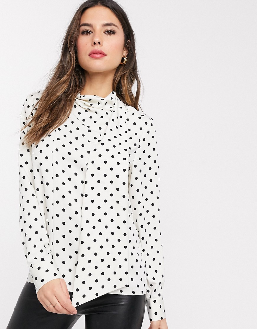 Warehouse Bluzka w groszki szalowy kołnierzyk S 36