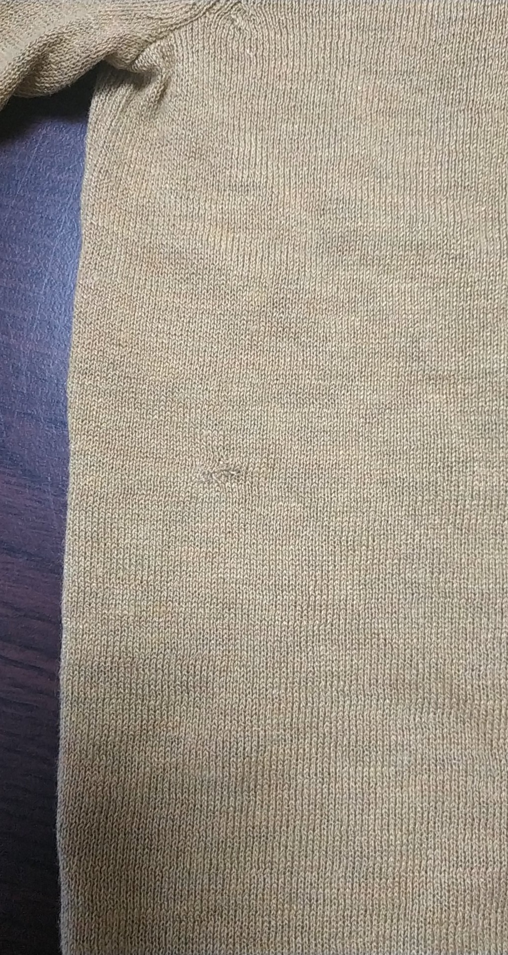 - Defekt zaszyta dziurka z przodu po prawej stronie, zdjęcie w galerii produktu